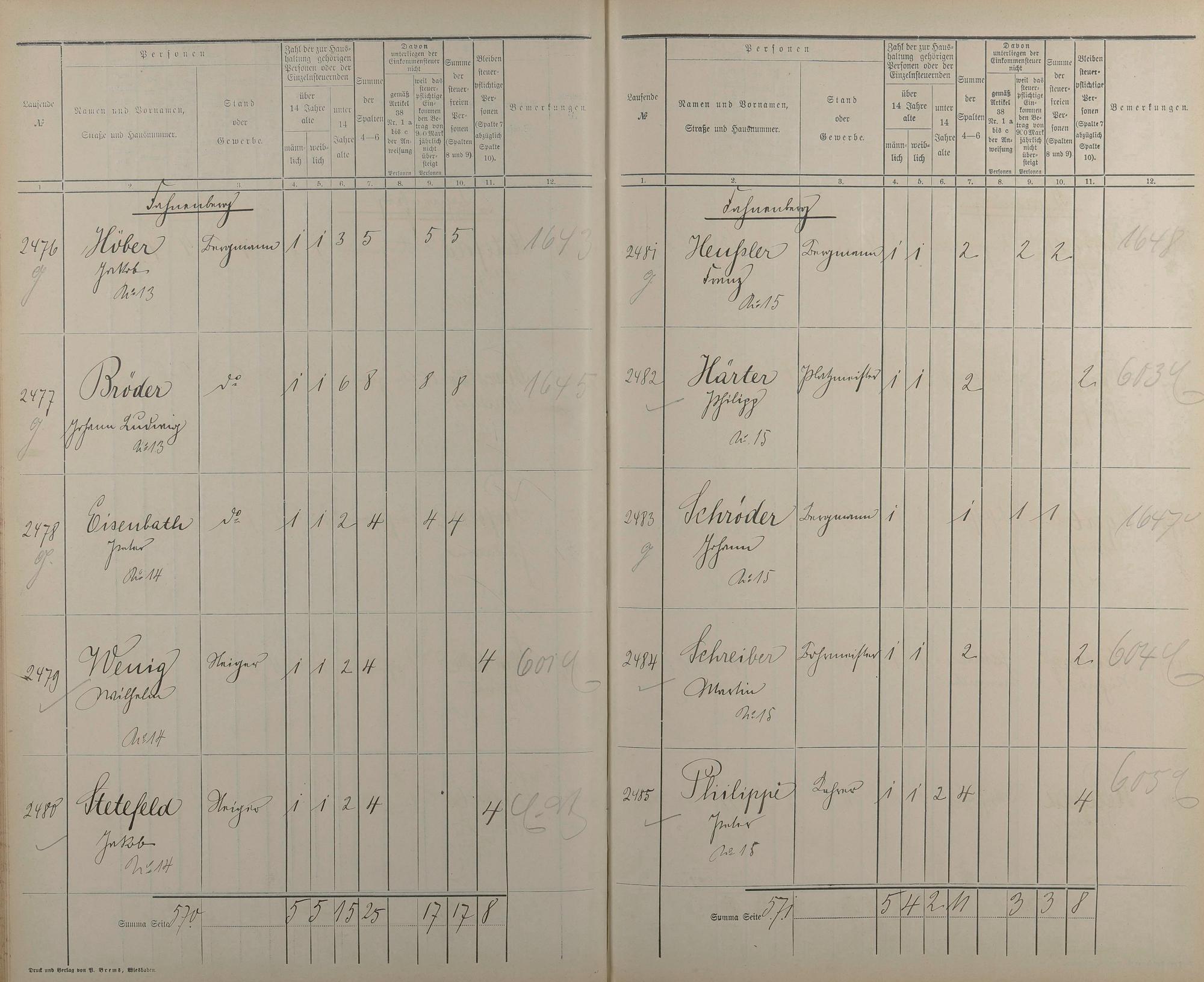 Einwohnerverzeichnis nach Straßen und Anzahl der steuerpflichtigen Personen