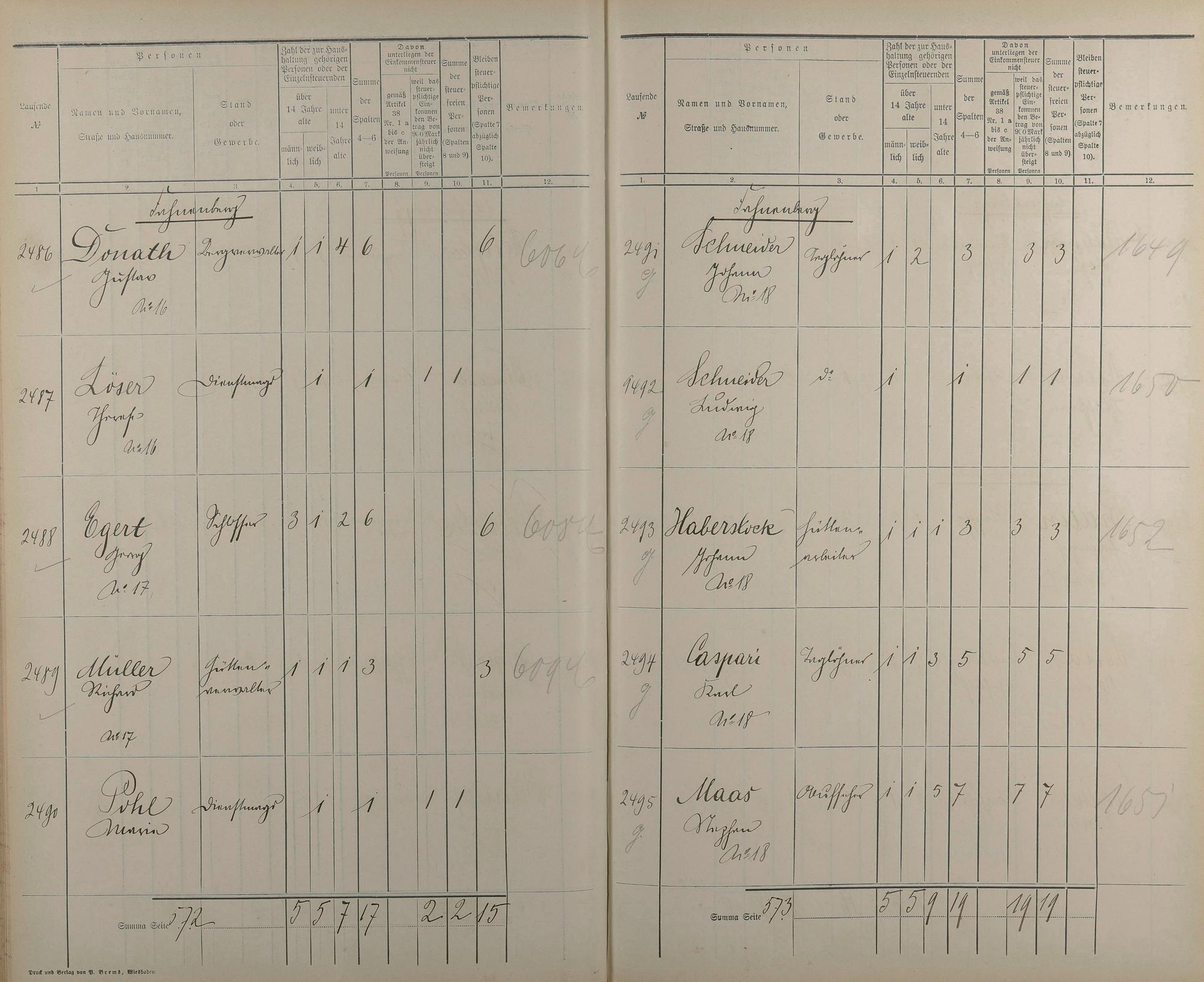 219: Einwohnerverzeichnis nach Straßen und Anzahl der steuerpflichtigen Personen
