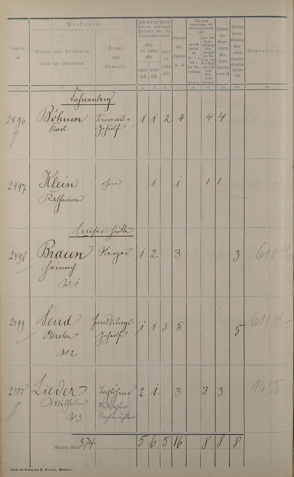 Einwohnerverzeichnis nach Straßen und Anzahl der steuerpflichtigen Personen