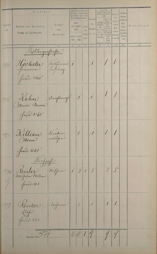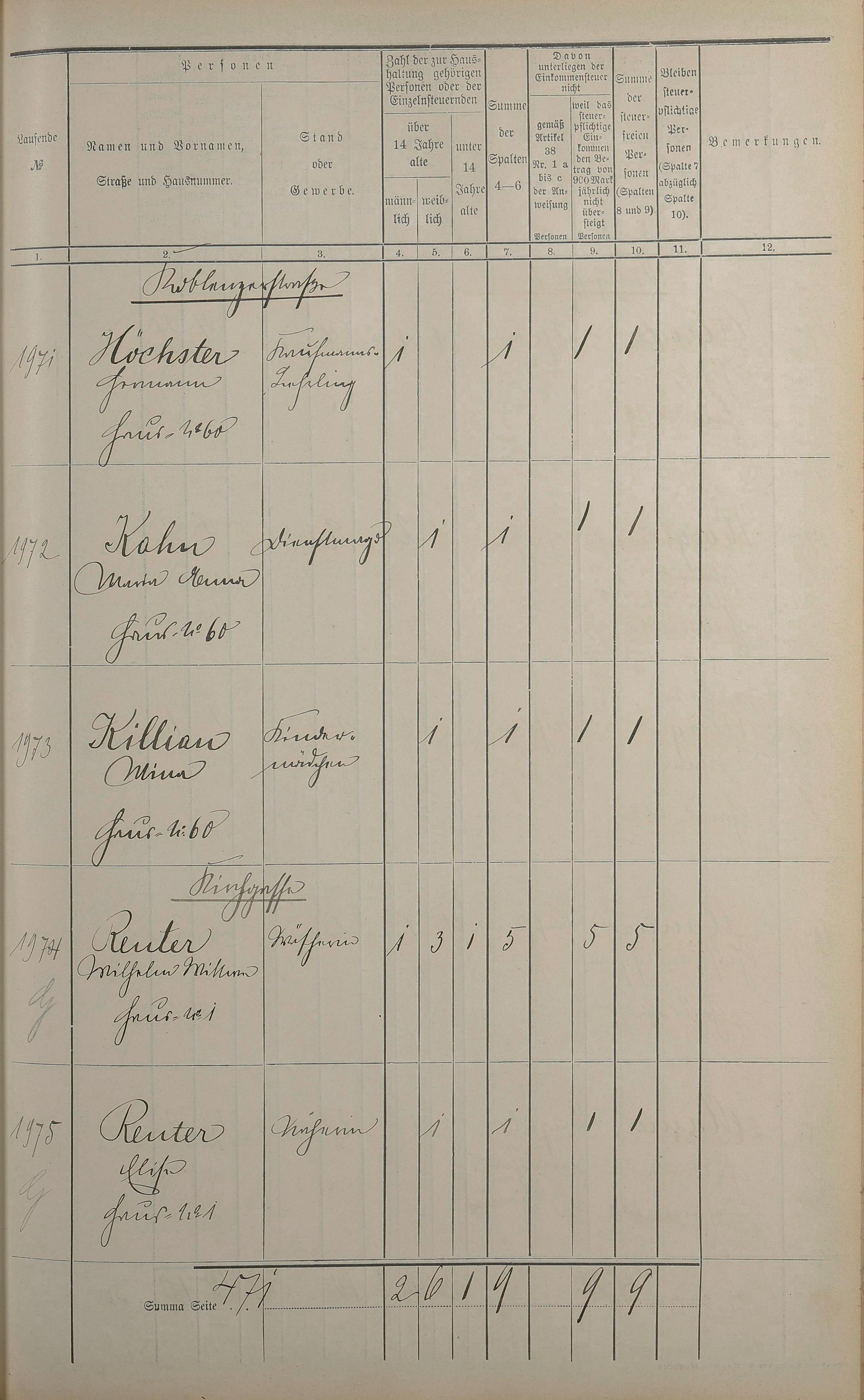 Einwohnerverzeichnis nach Straßen und Anzahl der steuerpflichtigen Personen