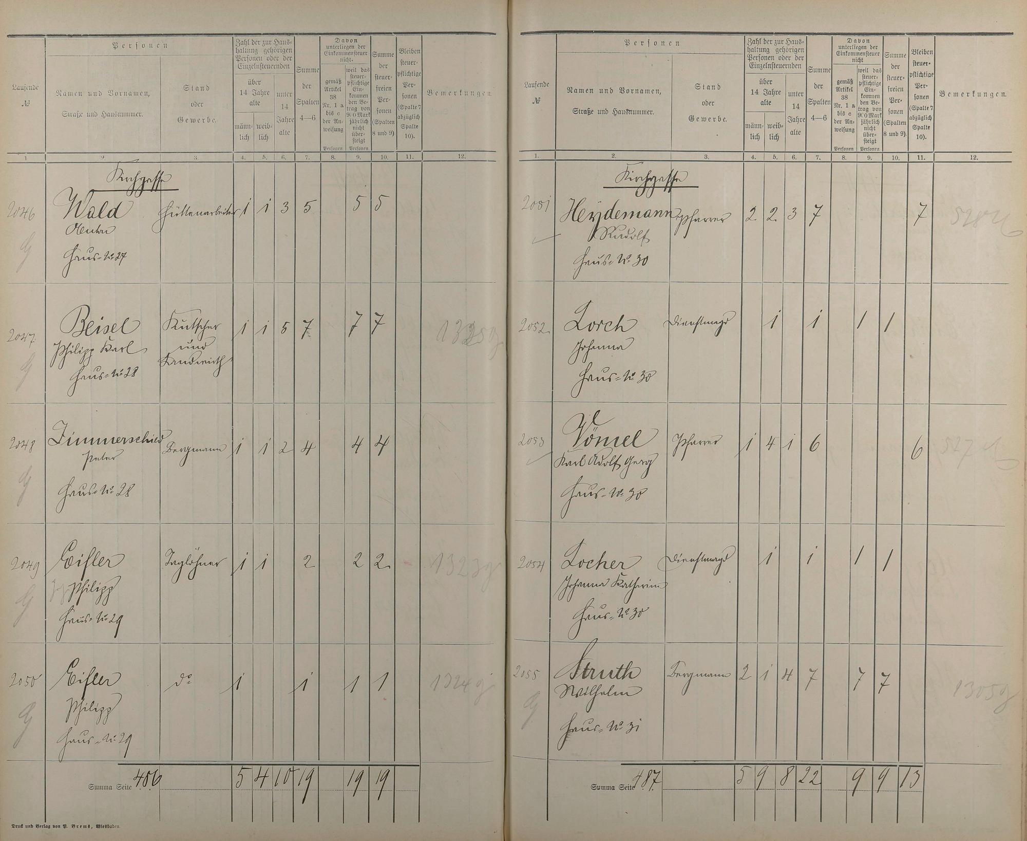 Einwohnerverzeichnis nach Straßen und Anzahl der steuerpflichtigen Personen