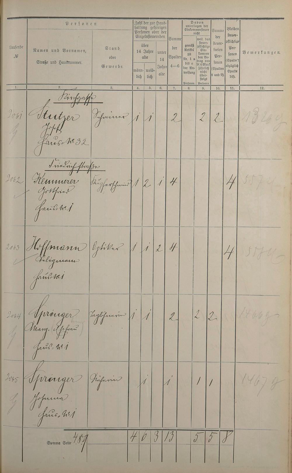 Einwohnerverzeichnis nach Straßen und Anzahl der steuerpflichtigen Personen