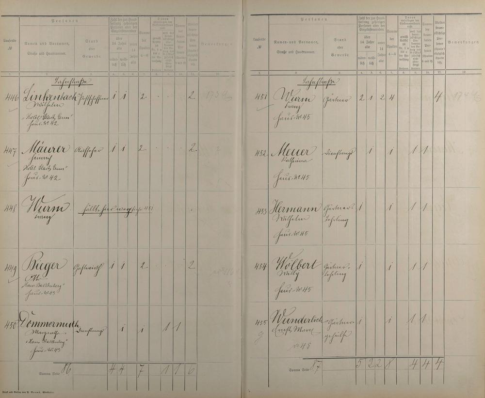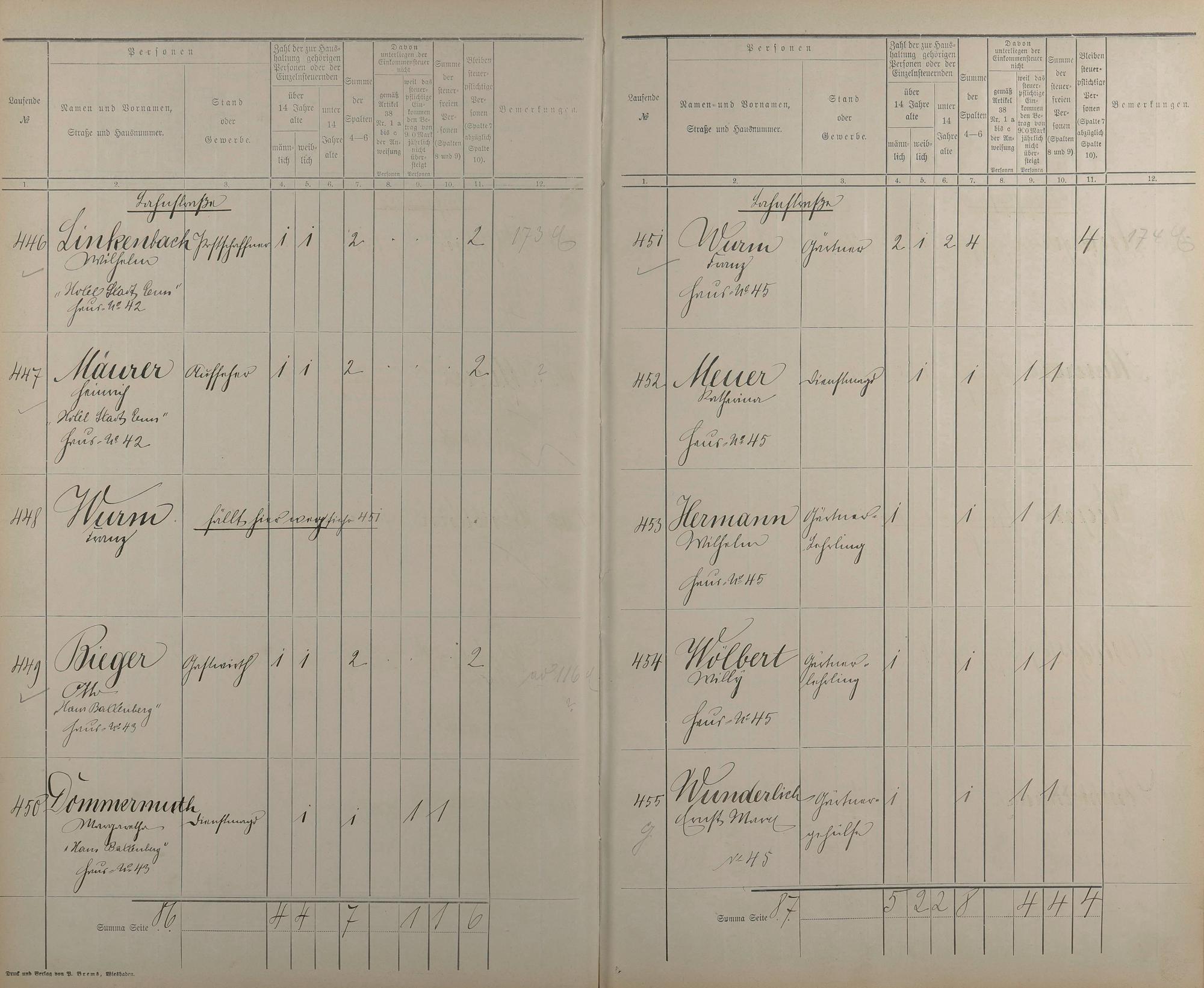 Einwohnerverzeichnis nach Straßen und Anzahl der steuerpflichtigen Personen