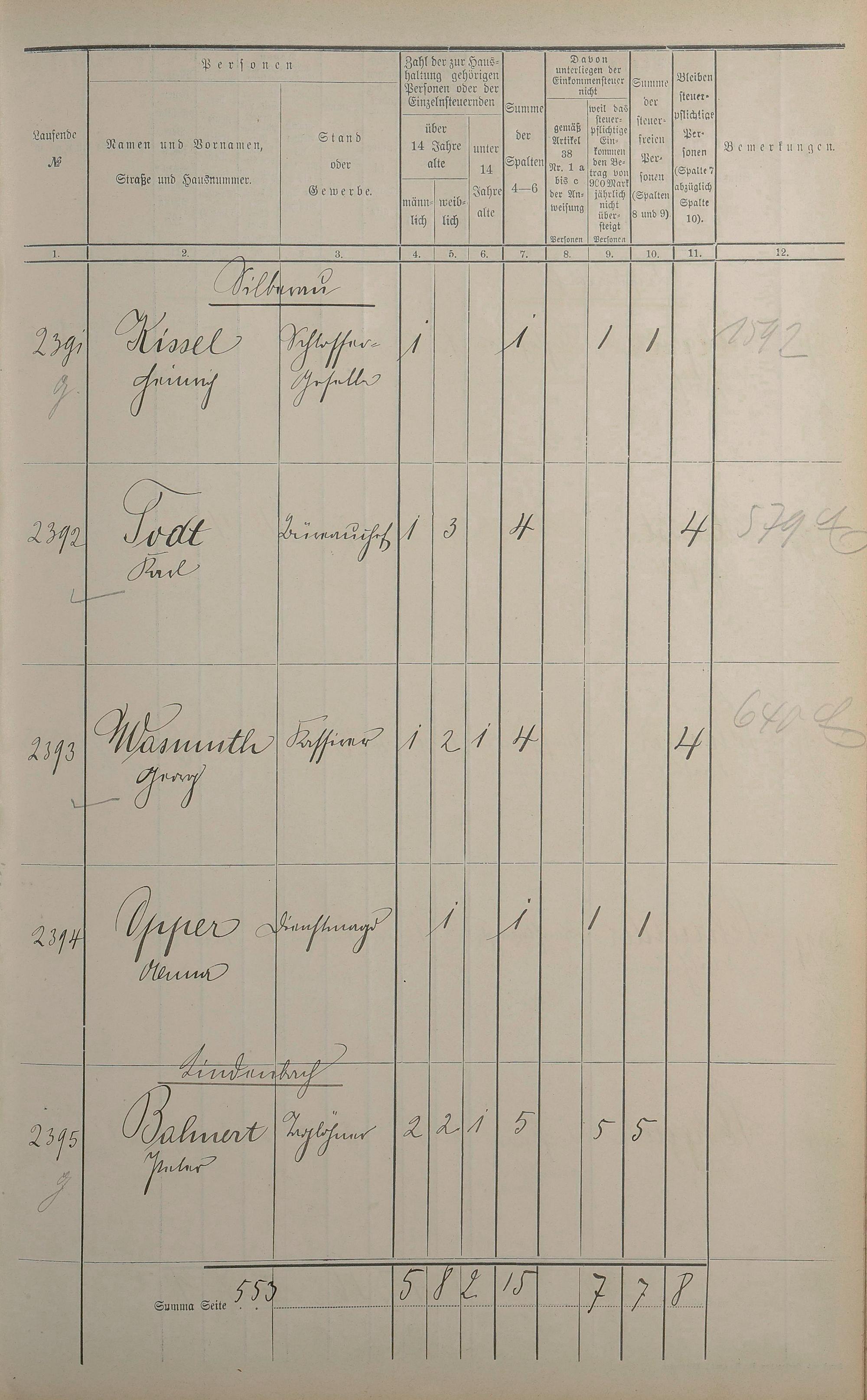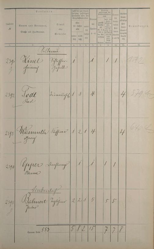 Einwohnerverzeichnis nach Straßen und Anzahl der steuerpflichtigen Personen