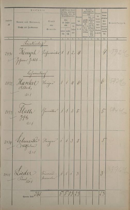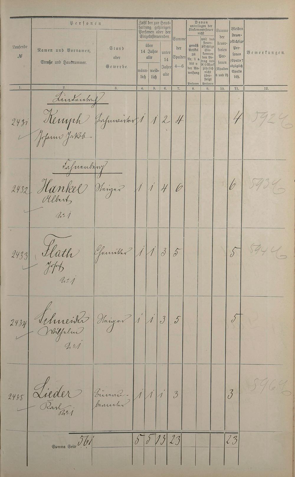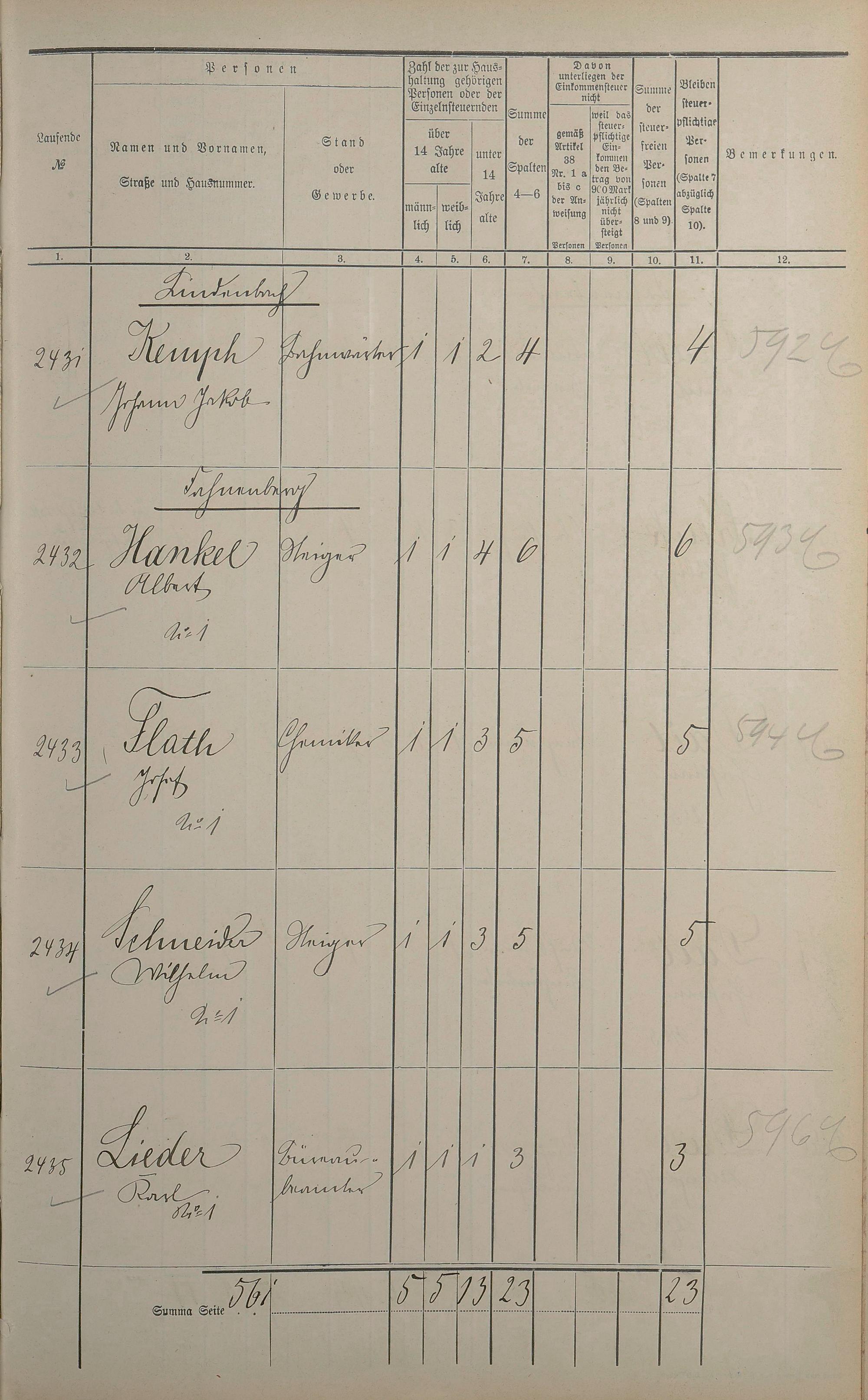 Einwohnerverzeichnis nach Straßen und Anzahl der steuerpflichtigen Personen