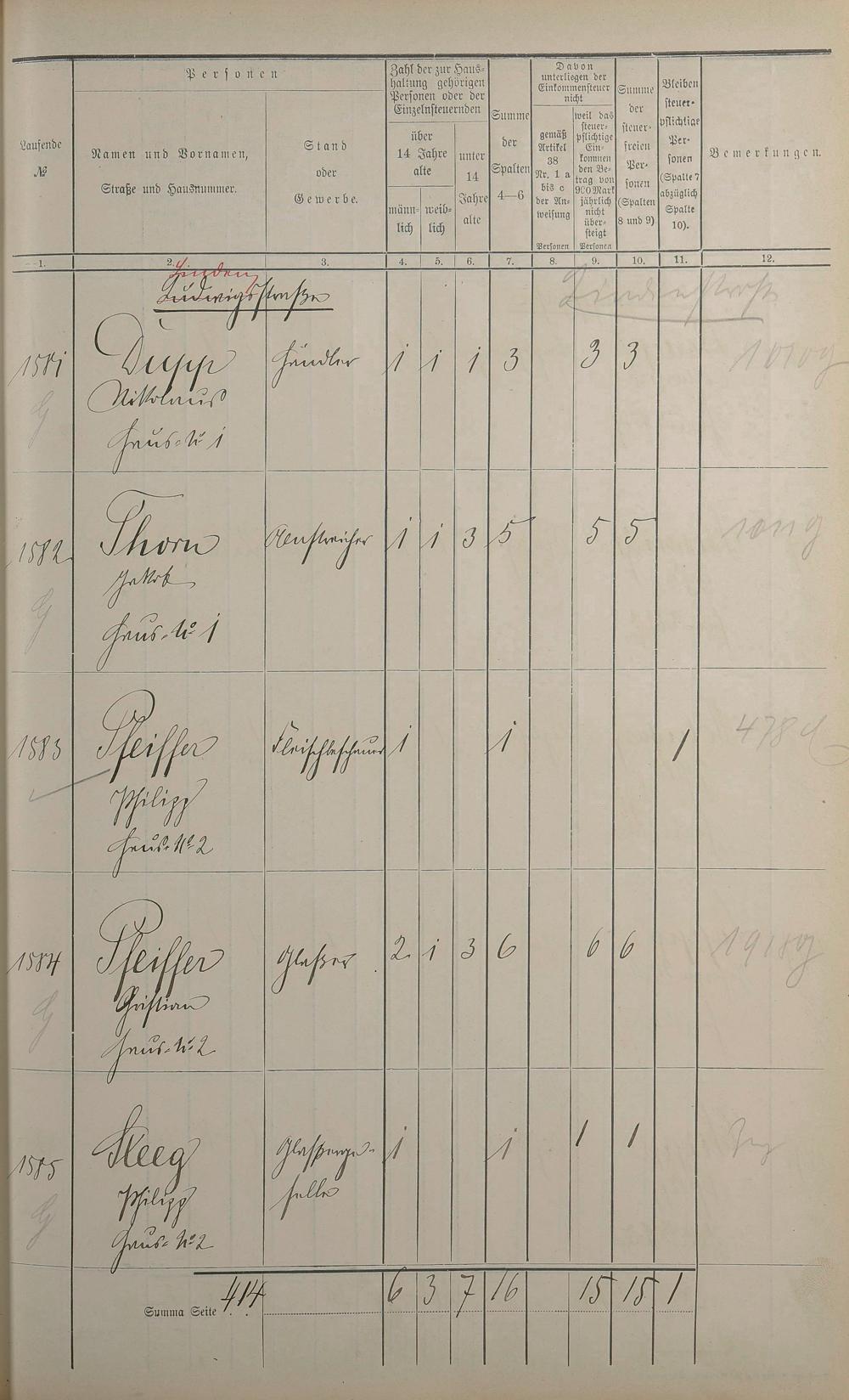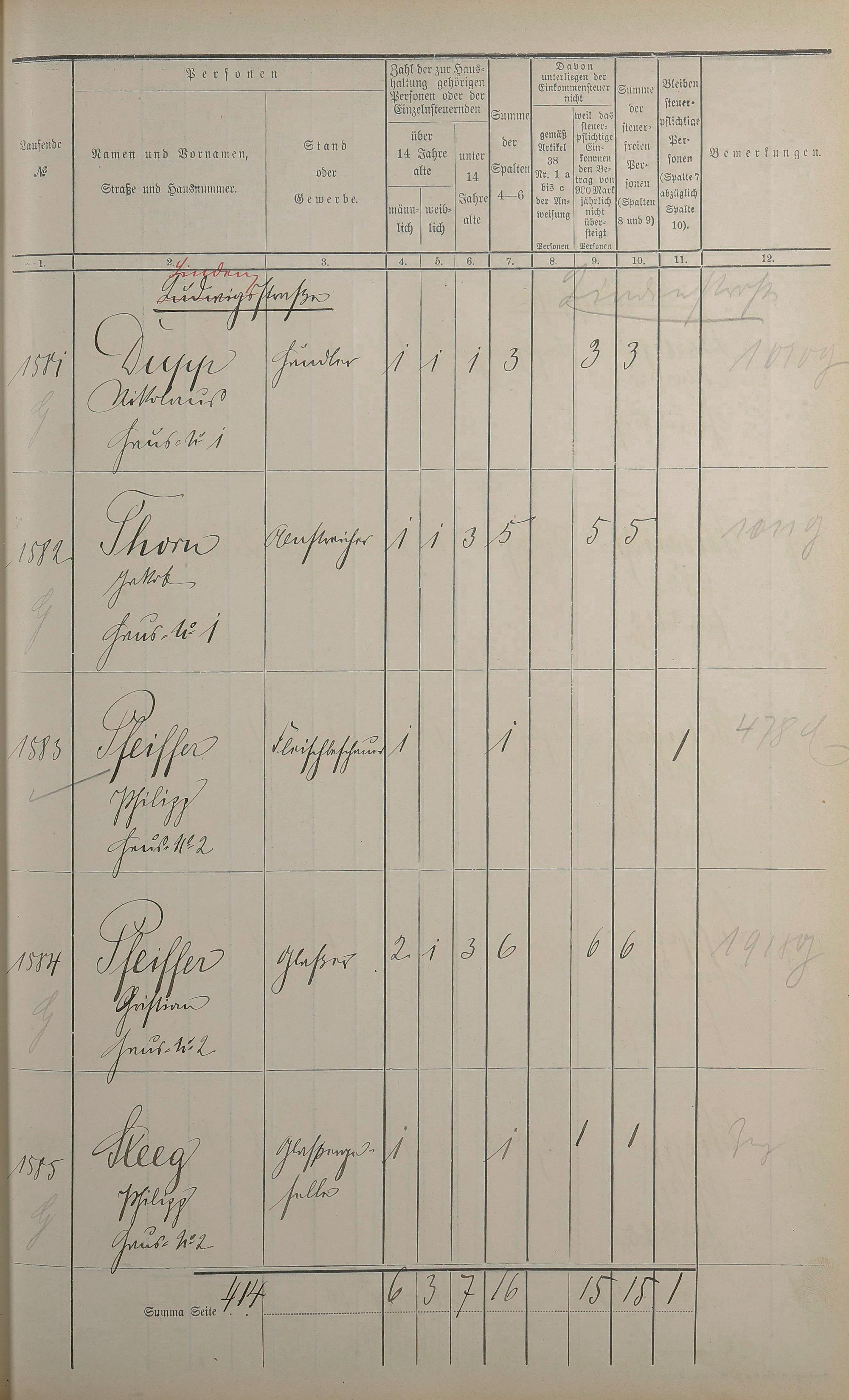 Einwohnerverzeichnis nach Straßen und Anzahl der steuerpflichtigen Personen