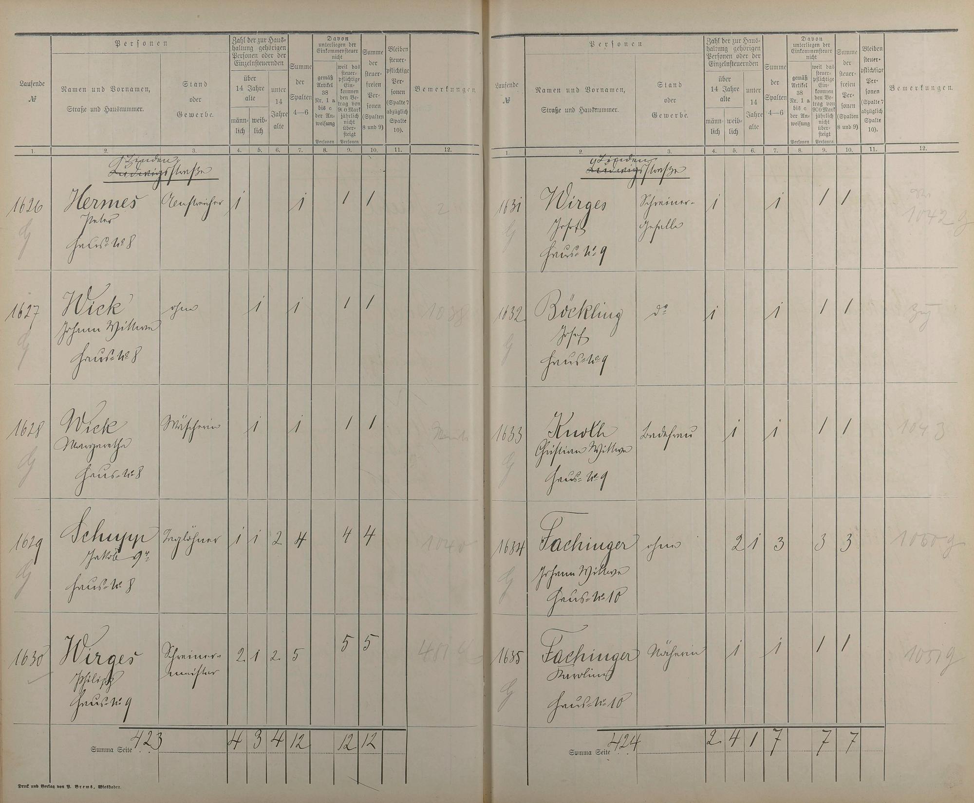 Einwohnerverzeichnis nach Straßen und Anzahl der steuerpflichtigen Personen