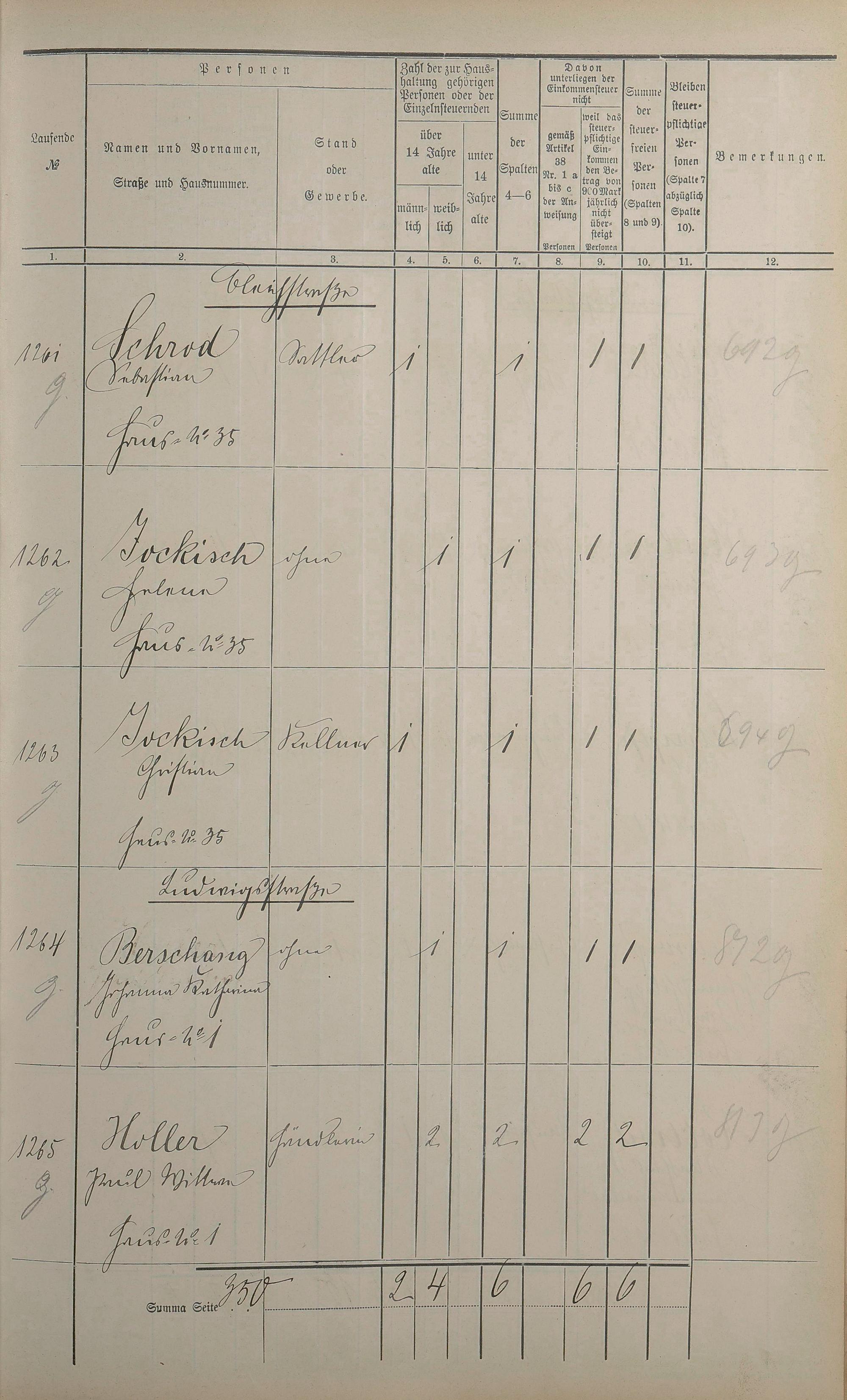 Einwohnerverzeichnis nach Straßen und Anzahl der steuerpflichtigen Personen