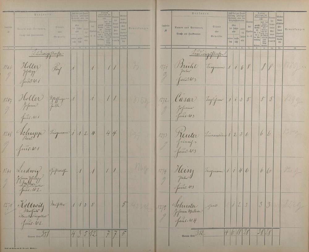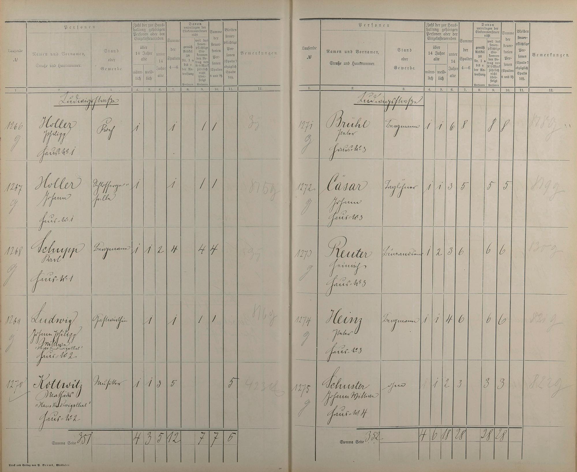 Einwohnerverzeichnis nach Straßen und Anzahl der steuerpflichtigen Personen