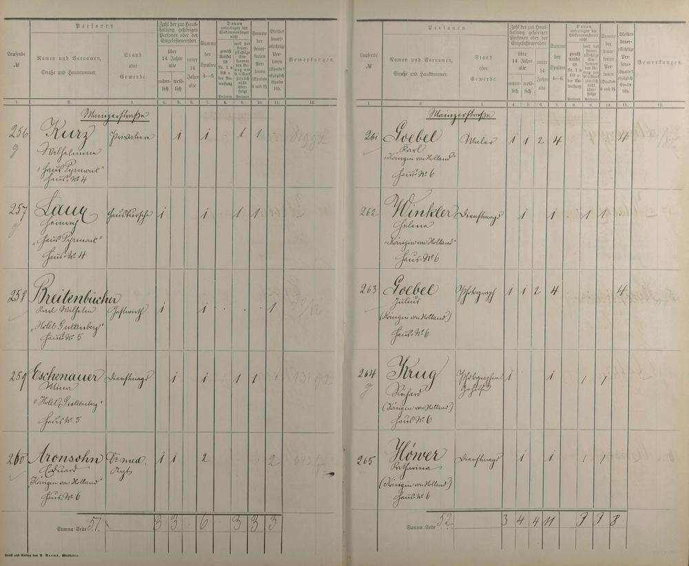 Einwohnerverzeichnis nach Straßen und Anzahl der steuerpflichtigen Personen