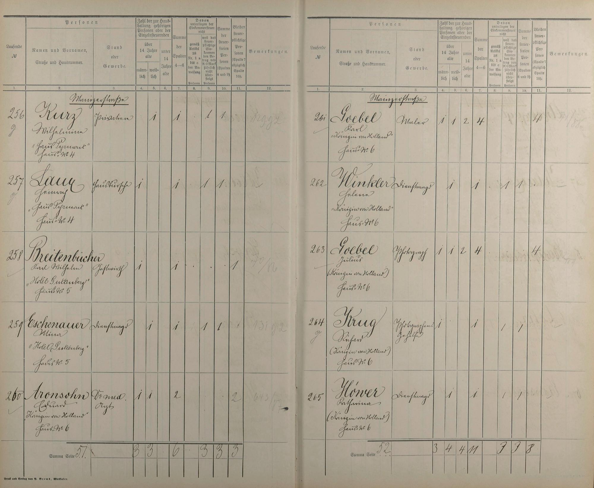 219: Einwohnerverzeichnis nach Straßen und Anzahl der steuerpflichtigen Personen