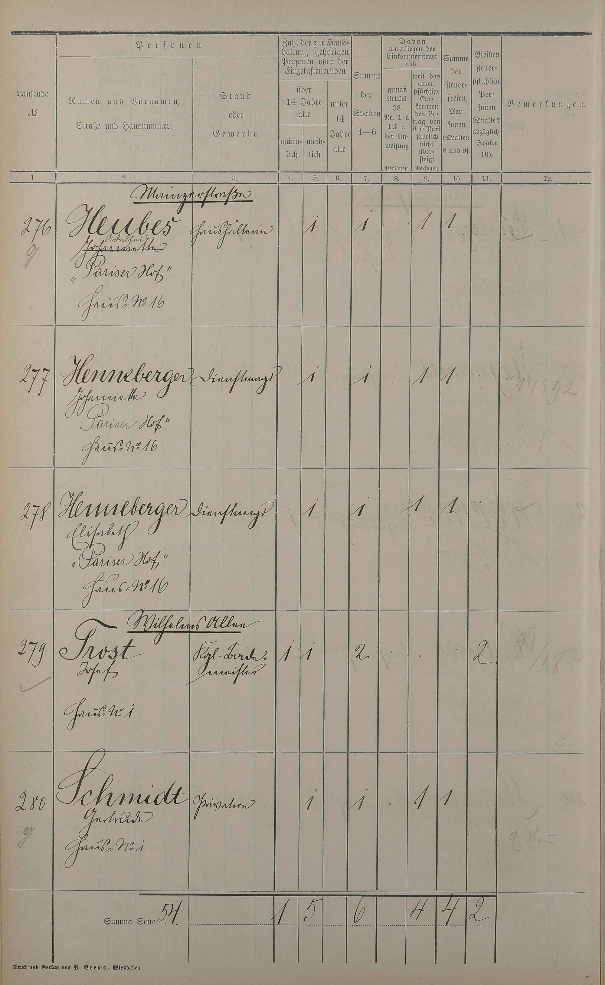 219: Einwohnerverzeichnis nach Straßen und Anzahl der steuerpflichtigen Personen