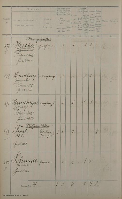 Einwohnerverzeichnis nach Straßen und Anzahl der steuerpflichtigen Personen