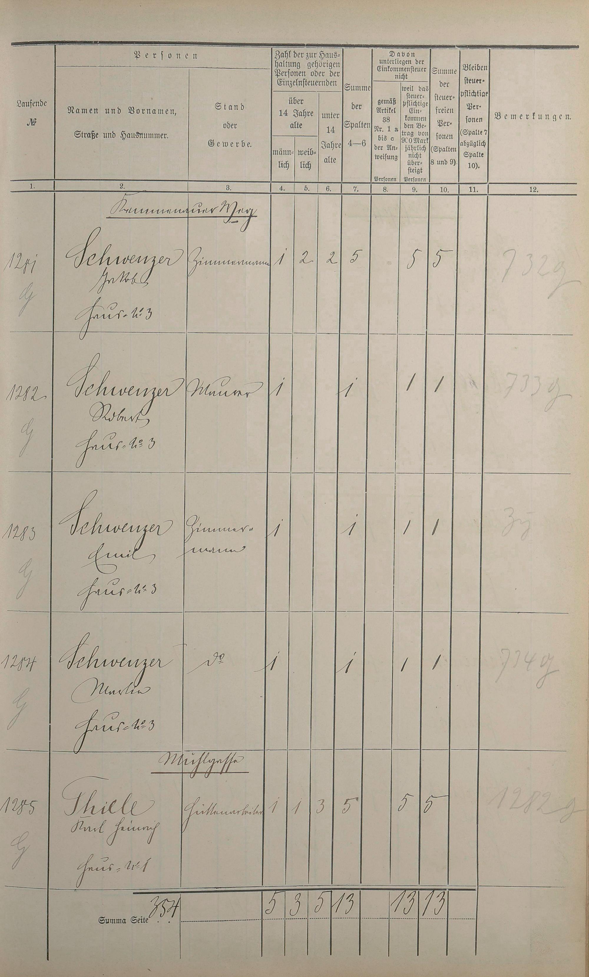 Einwohnerverzeichnis nach Straßen und Anzahl der steuerpflichtigen Personen