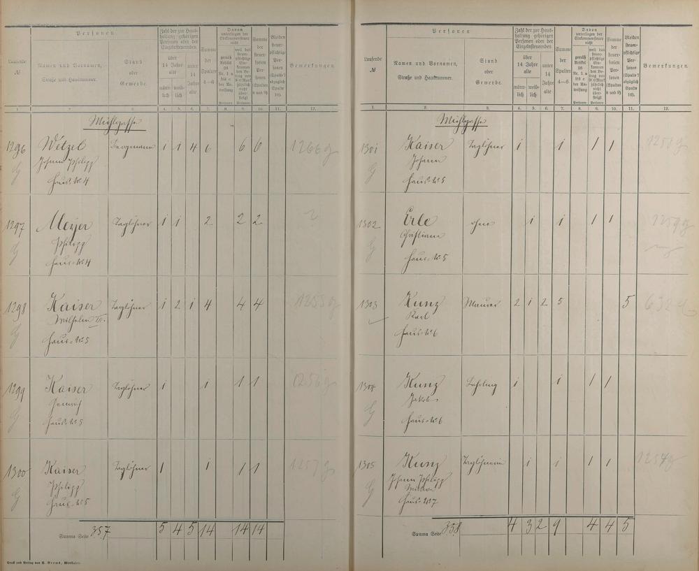 Einwohnerverzeichnis nach Straßen und Anzahl der steuerpflichtigen Personen