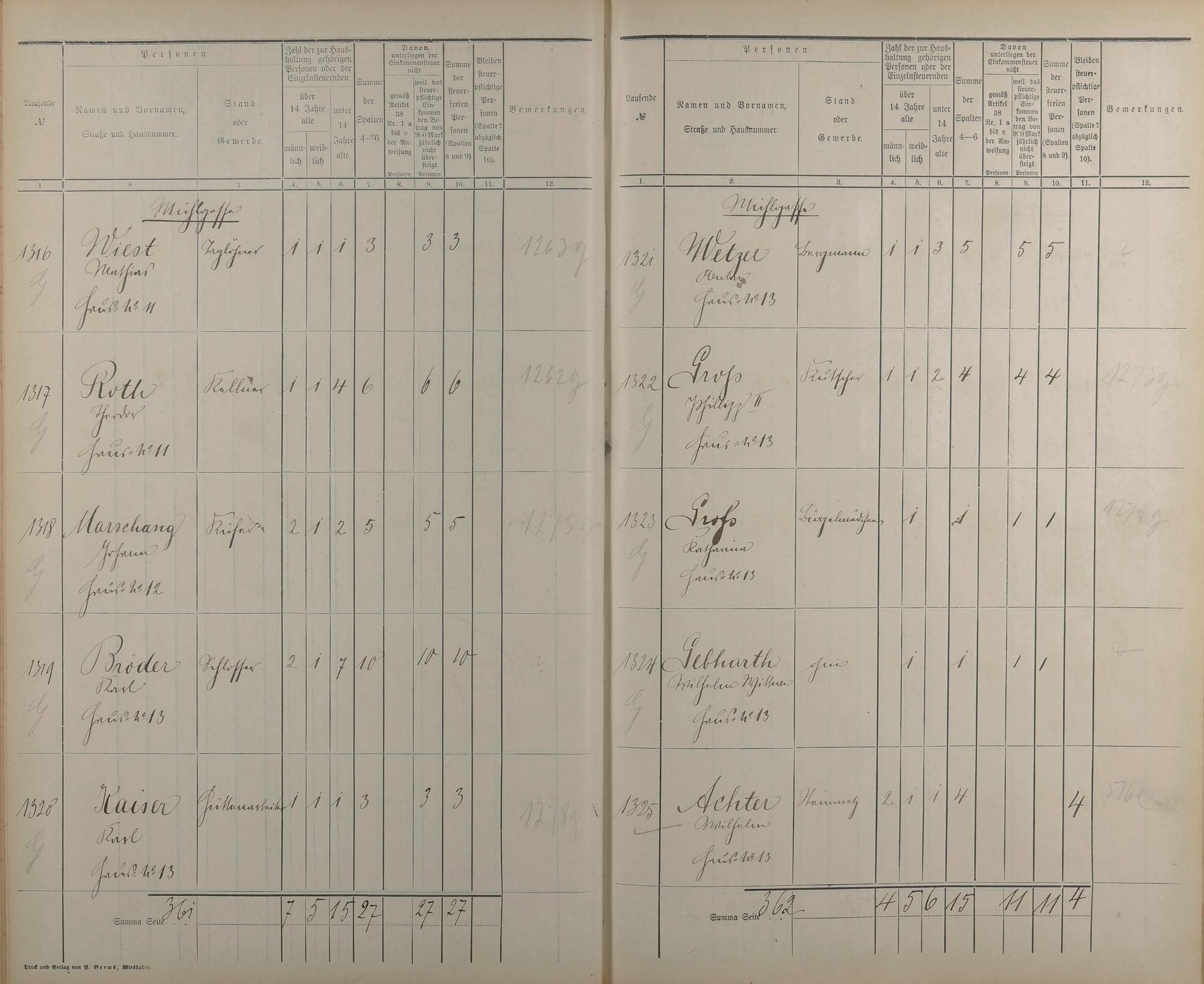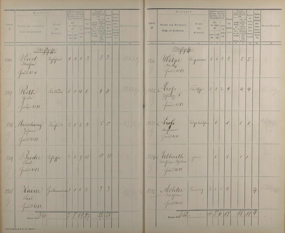 Einwohnerverzeichnis nach Straßen und Anzahl der steuerpflichtigen Personen