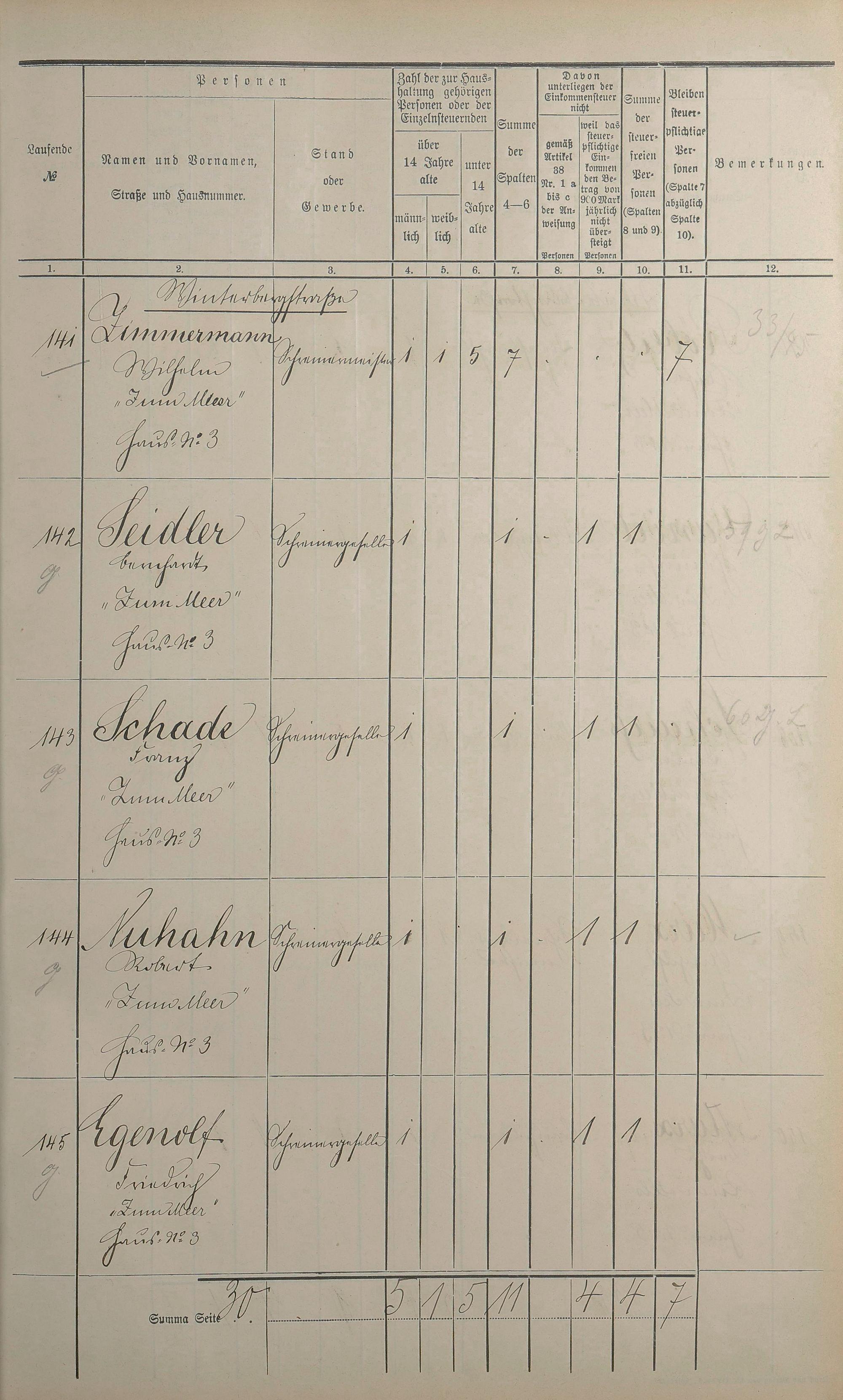Einwohnerverzeichnis nach Straßen und Anzahl der steuerpflichtigen Personen
