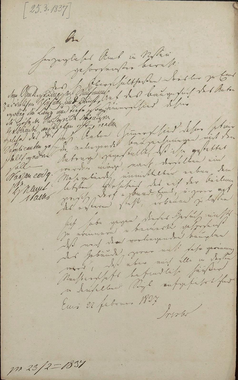 Wohnhaus "Prinz Eugen" des Johann Anton Zimmerschied/Johann Adam Jost und Elisabethe geb. Jost/Ferdinand Brien/Ferdinand Jost/Luise Jost/Johannes Hermann und Marie geb. Lehrum/Alois Weller und Maria geb. Hermann/Volksbank Bad Ems Römerstraße Nr. 82 (77) Flur 98 Nr. 32/4 (nicht ausgeführt)