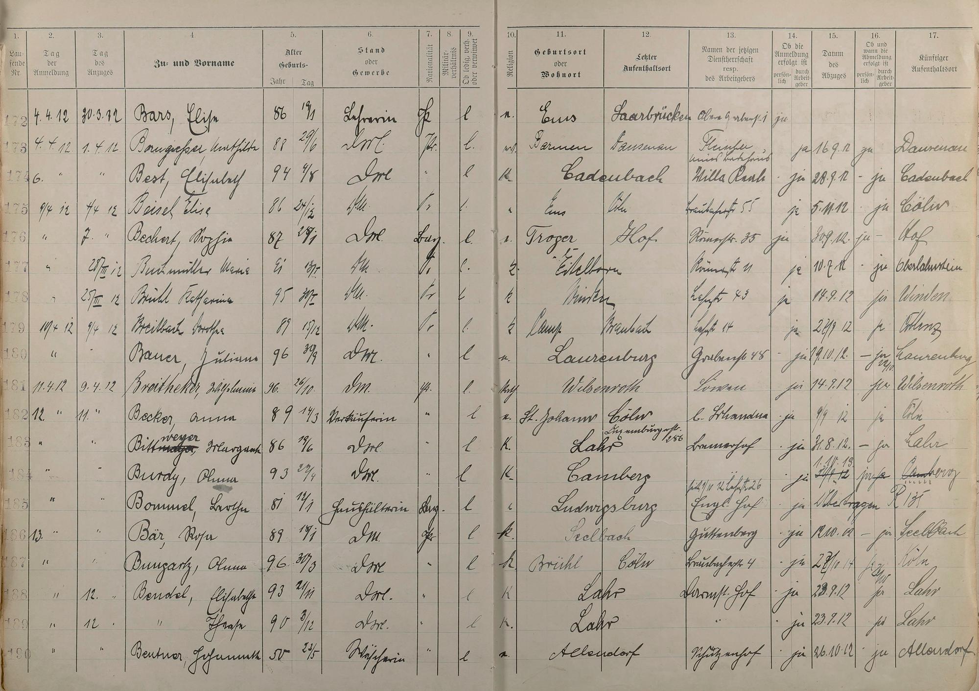 189: Melderegister der Gewerbegehilfinnen, Gesellinnen und Dienstbotinnen 1911 -...