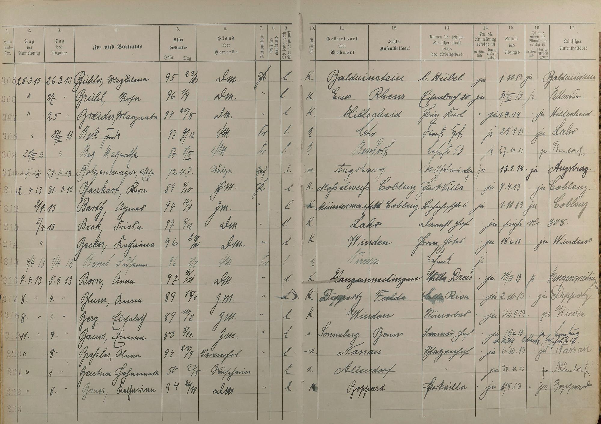 Melderegister der Gewerbegehilfinnen, Gesellinnen und Dienstbotinnen 1911 - Apr. 1915