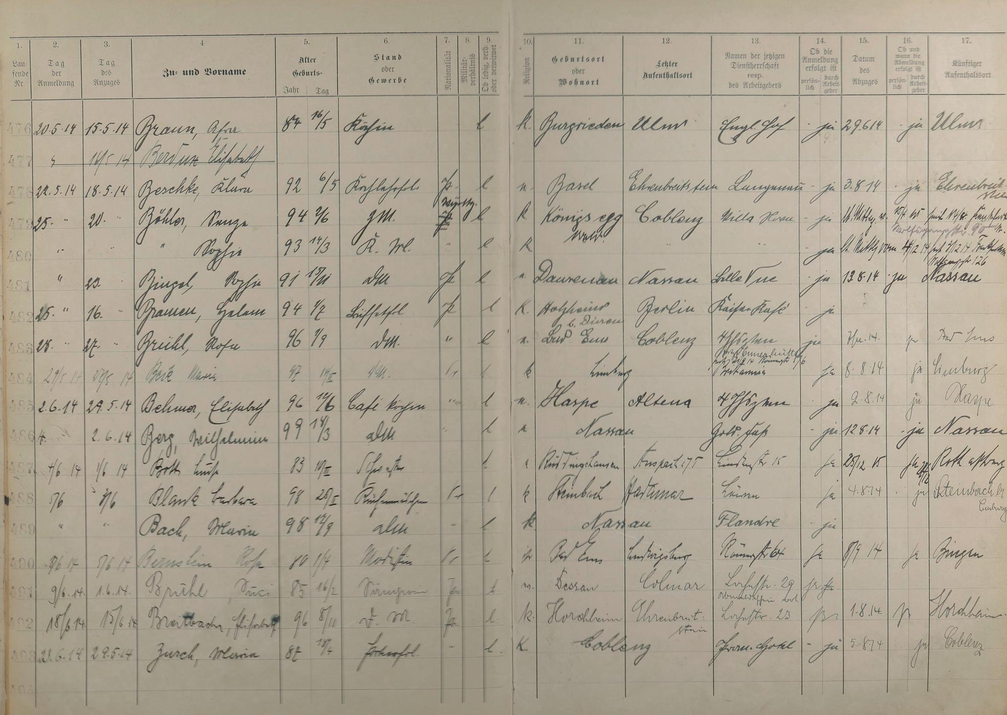 Melderegister der Gewerbegehilfinnen, Gesellinnen und Dienstbotinnen 1911 - Apr. 1915