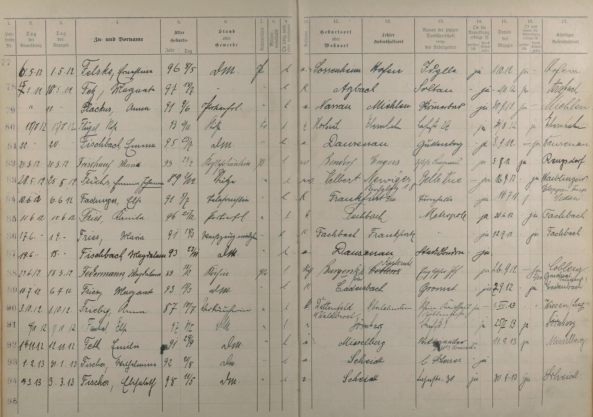 Melderegister der Gewerbegehilfinnen, Gesellinnen und Dienstbotinnen 1911 - Apr. 1915