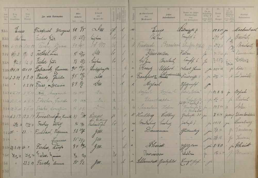 189: Melderegister der Gewerbegehilfinnen, Gesellinnen und Dienstbotinnen 1911 -...