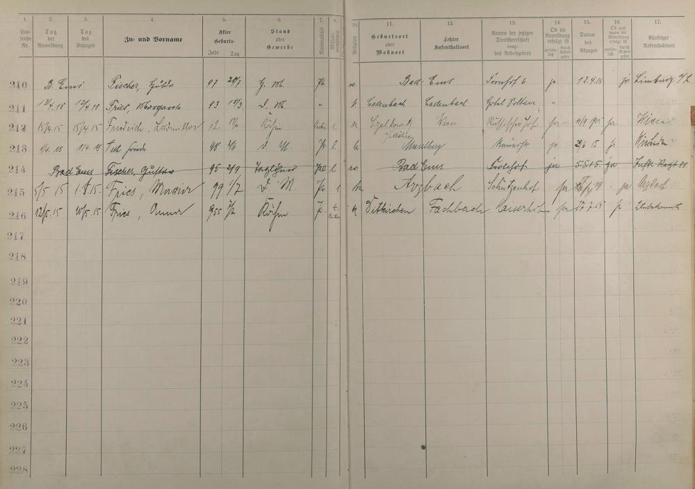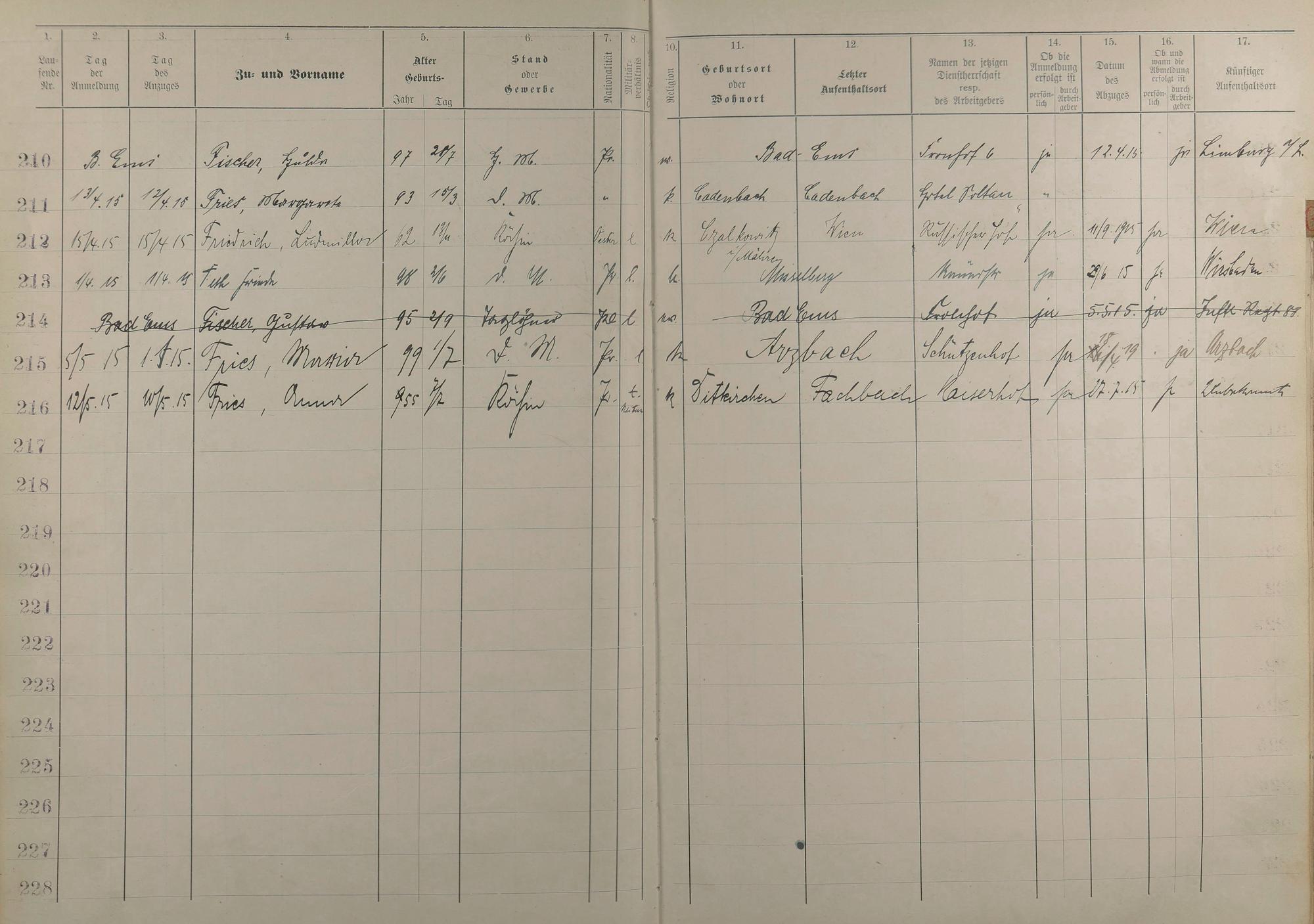 Melderegister der Gewerbegehilfinnen, Gesellinnen und Dienstbotinnen 1911 - Apr. 1915
