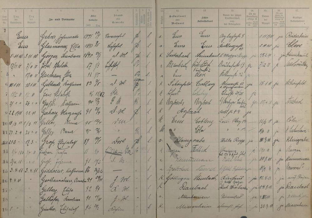 Melderegister der Gewerbegehilfinnen, Gesellinnen und Dienstbotinnen 1911 - Apr. 1915
