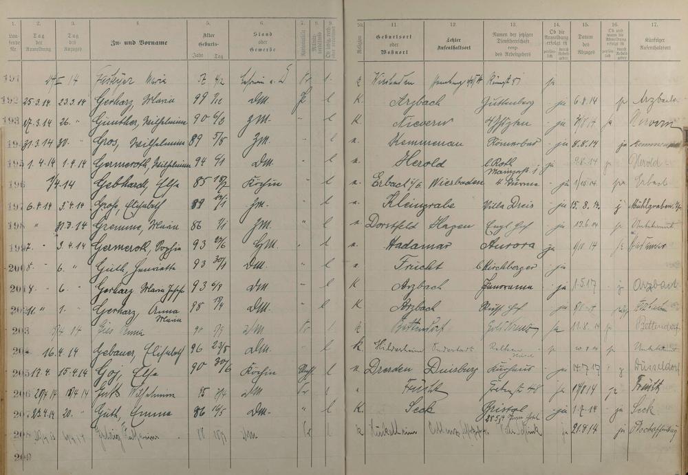 Melderegister der Gewerbegehilfinnen, Gesellinnen und Dienstbotinnen 1911 - Apr. 1915