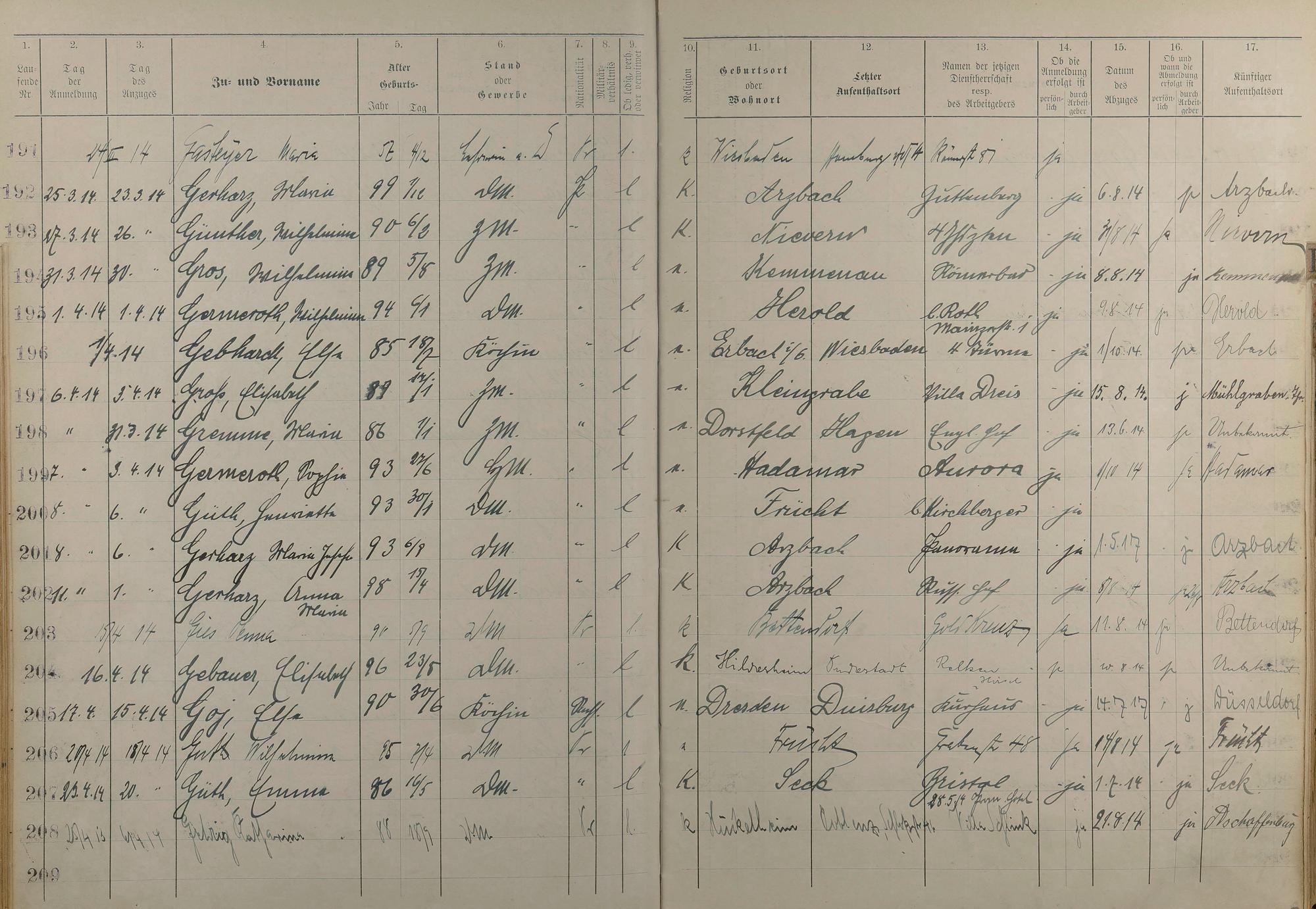 189: Melderegister der Gewerbegehilfinnen, Gesellinnen und Dienstbotinnen 1911 -...