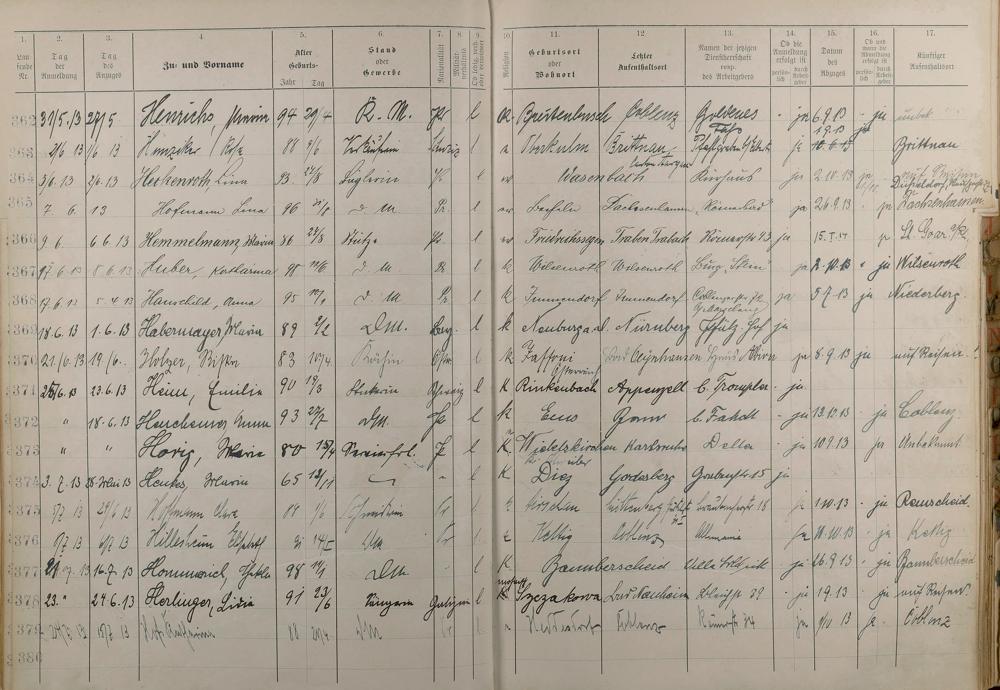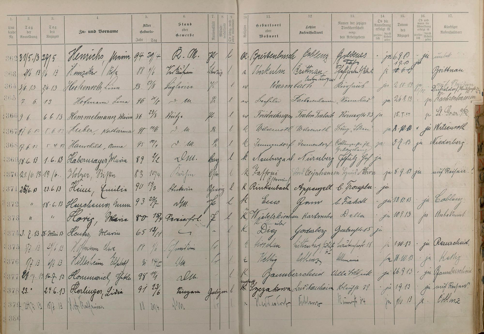 Melderegister der Gewerbegehilfinnen, Gesellinnen und Dienstbotinnen 1911 - Apr. 1915