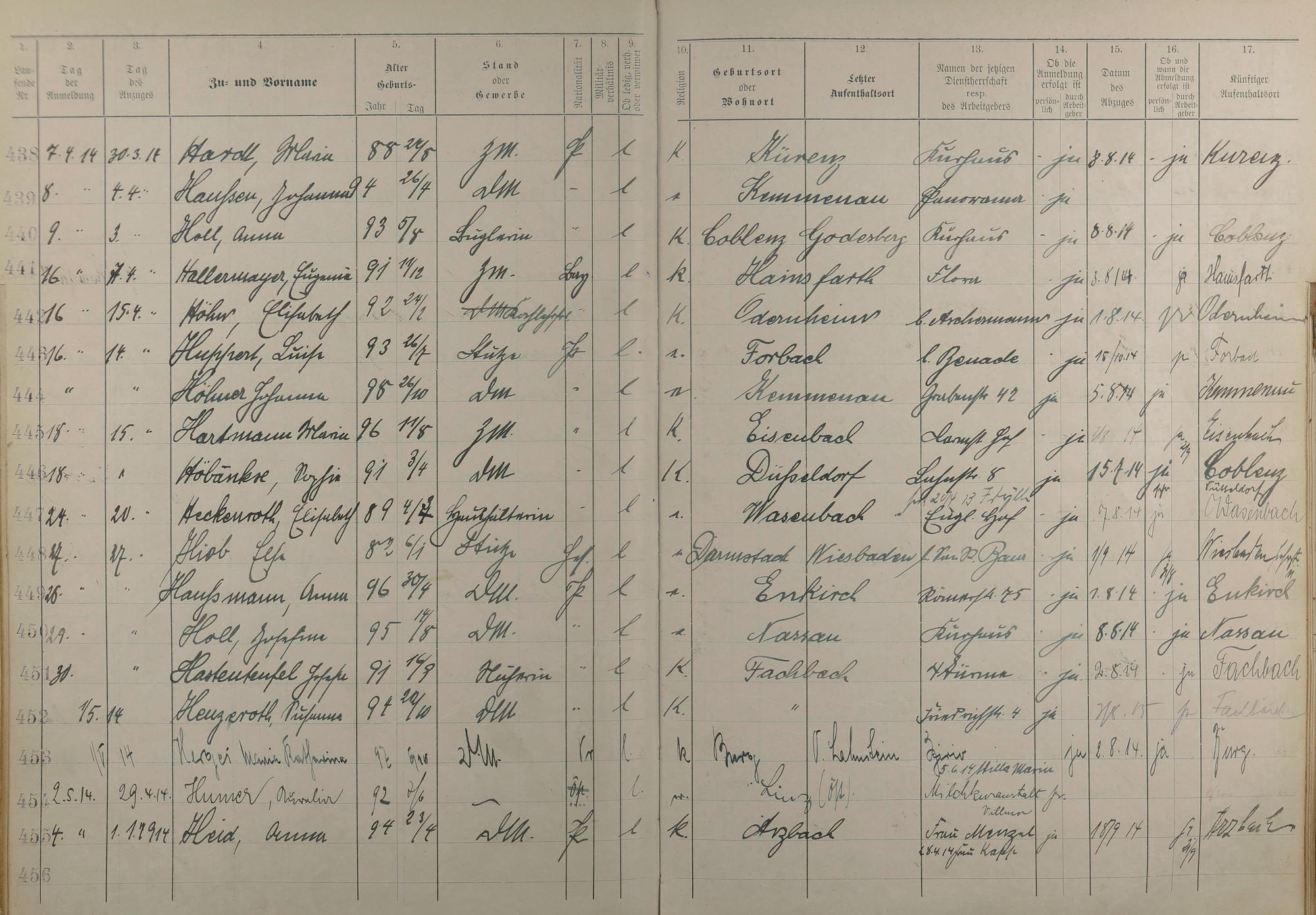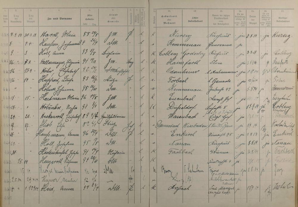 Melderegister der Gewerbegehilfinnen, Gesellinnen und Dienstbotinnen 1911 - Apr. 1915