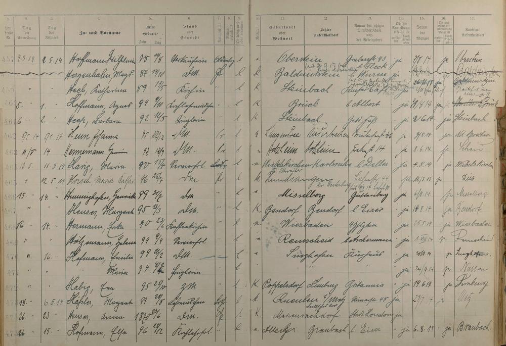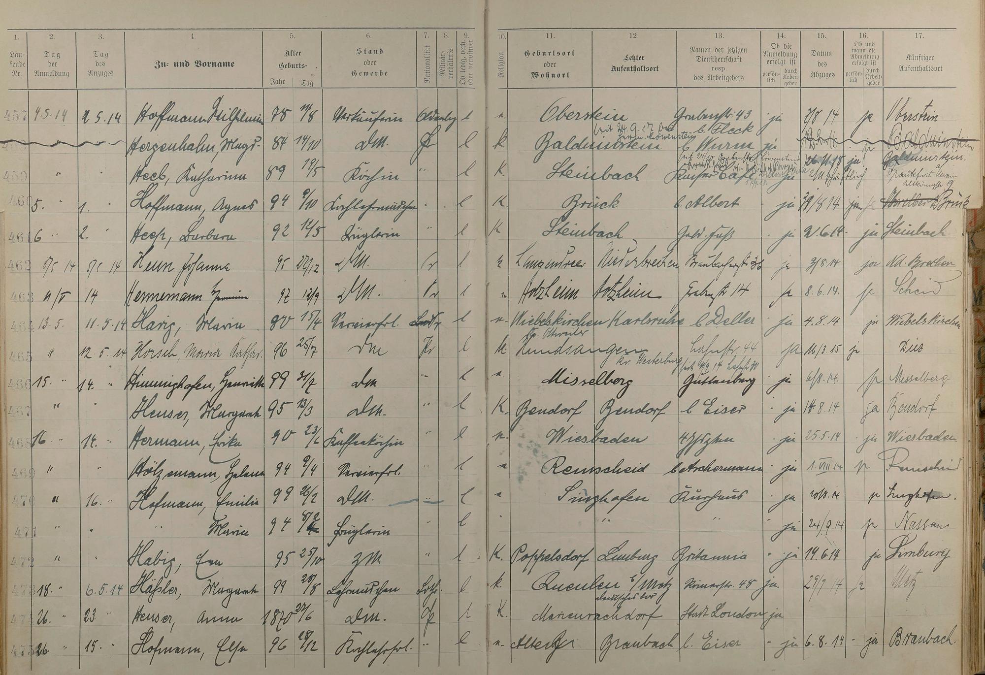 Melderegister der Gewerbegehilfinnen, Gesellinnen und Dienstbotinnen 1911 - Apr. 1915