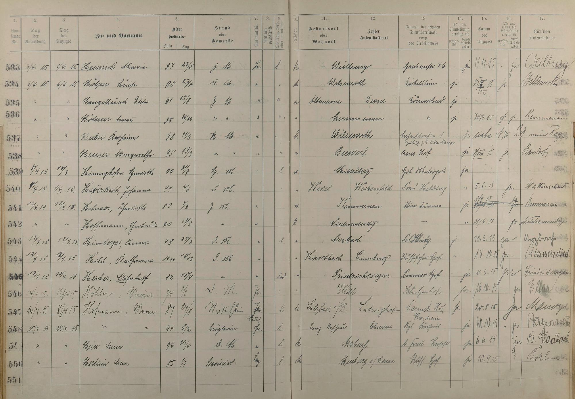 Melderegister der Gewerbegehilfinnen, Gesellinnen und Dienstbotinnen 1911 - Apr. 1915