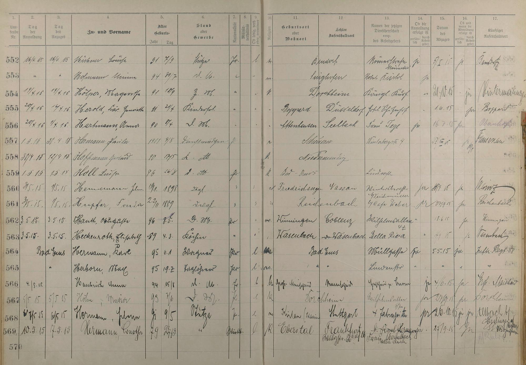 Melderegister der Gewerbegehilfinnen, Gesellinnen und Dienstbotinnen 1911 - Apr. 1915