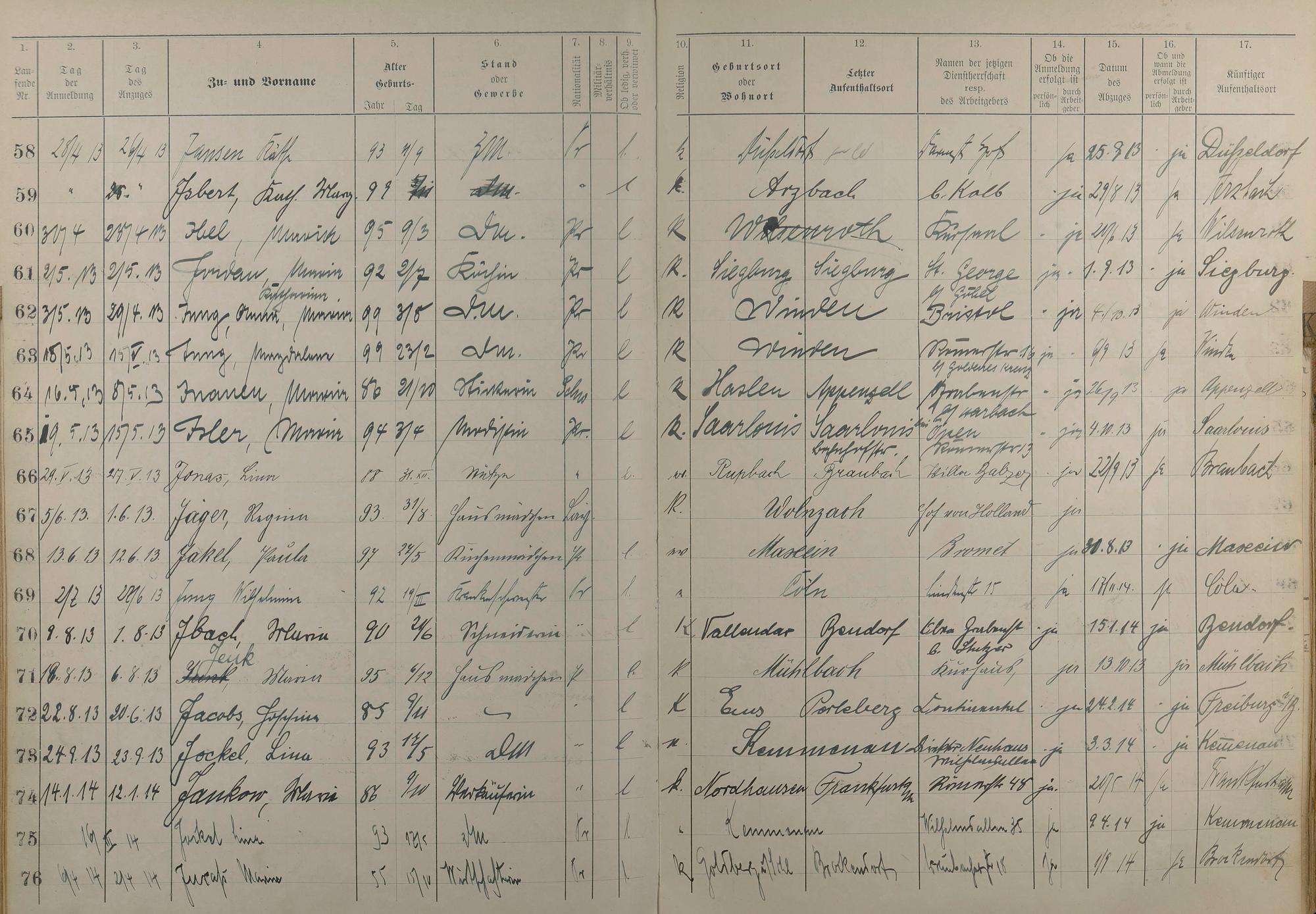 Melderegister der Gewerbegehilfinnen, Gesellinnen und Dienstbotinnen 1911 - Apr. 1915