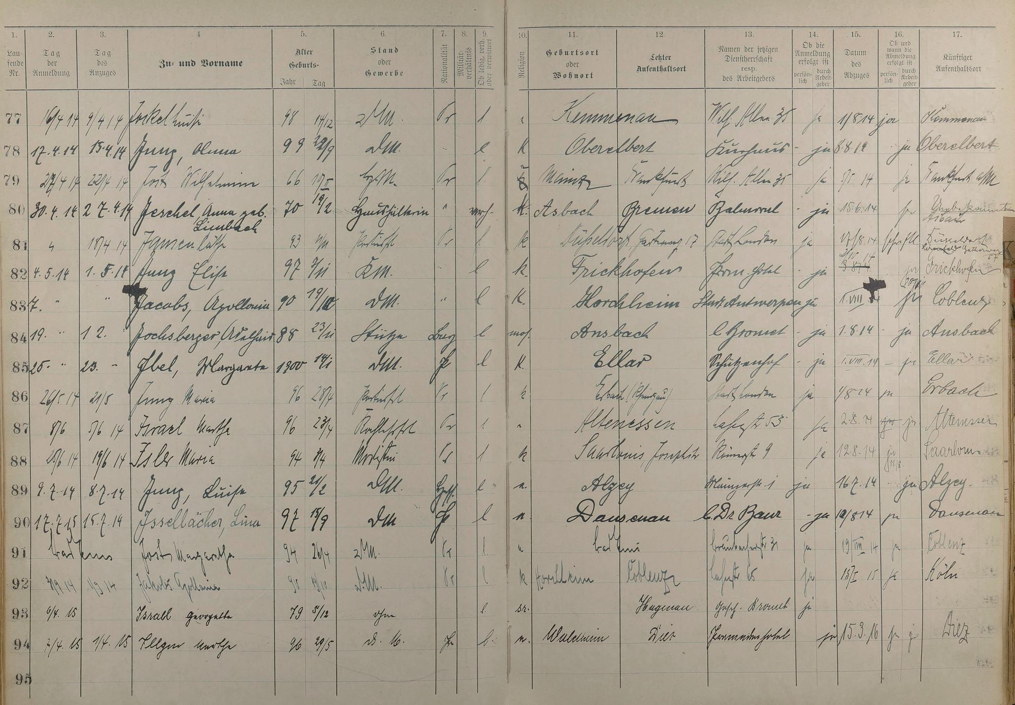 Melderegister der Gewerbegehilfinnen, Gesellinnen und Dienstbotinnen 1911 - Apr. 1915