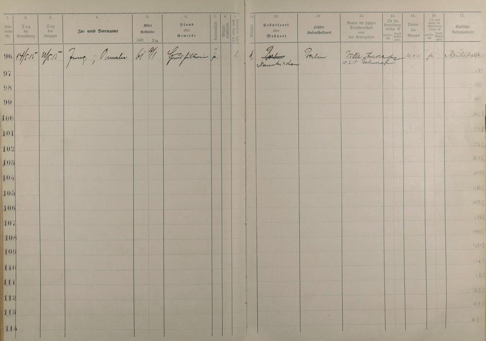 Melderegister der Gewerbegehilfinnen, Gesellinnen und Dienstbotinnen 1911 - Apr. 1915