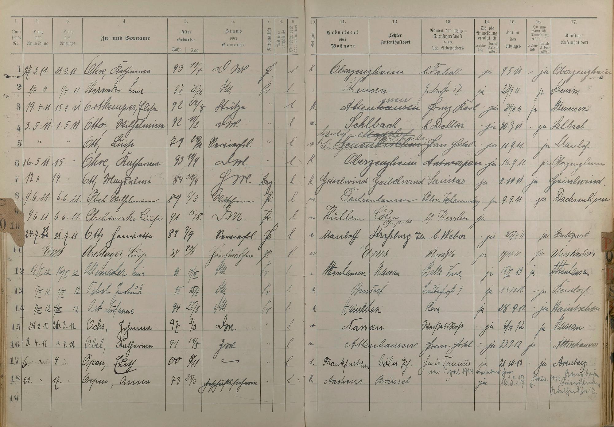 Melderegister der Gewerbegehilfinnen, Gesellinnen und Dienstbotinnen 1911 - Apr. 1915