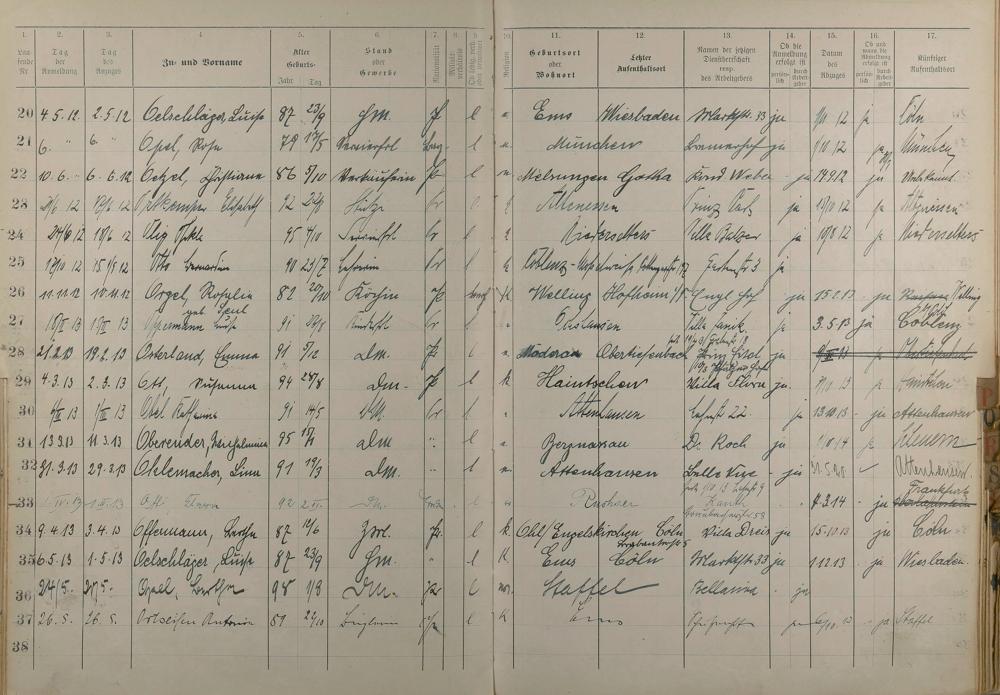 Melderegister der Gewerbegehilfinnen, Gesellinnen und Dienstbotinnen 1911 - Apr. 1915