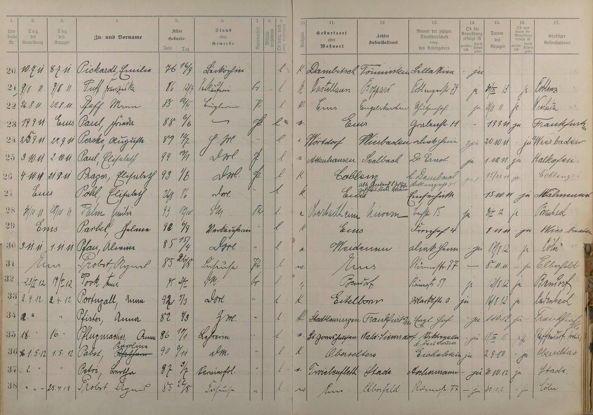 Melderegister der Gewerbegehilfinnen, Gesellinnen und Dienstbotinnen 1911 - Apr. 1915