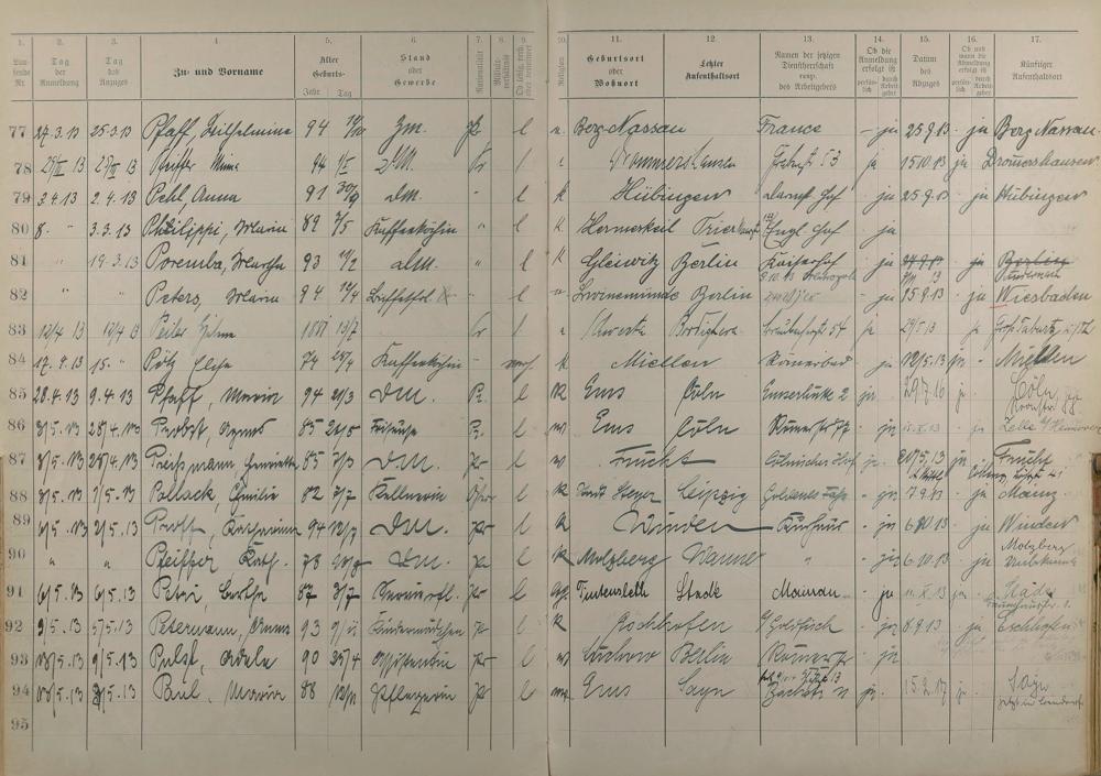 Melderegister der Gewerbegehilfinnen, Gesellinnen und Dienstbotinnen 1911 - Apr. 1915