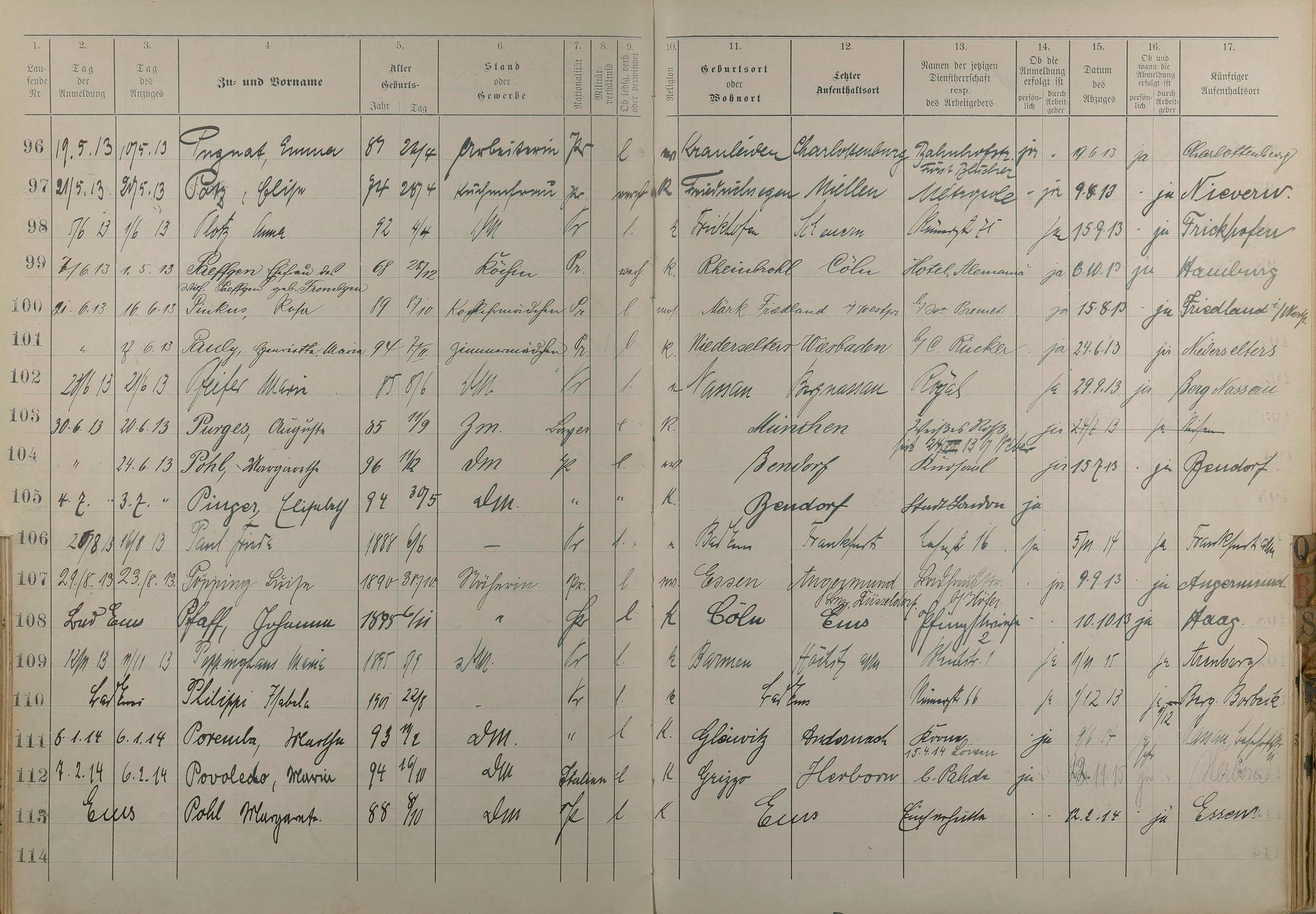 Melderegister der Gewerbegehilfinnen, Gesellinnen und Dienstbotinnen 1911 - Apr. 1915