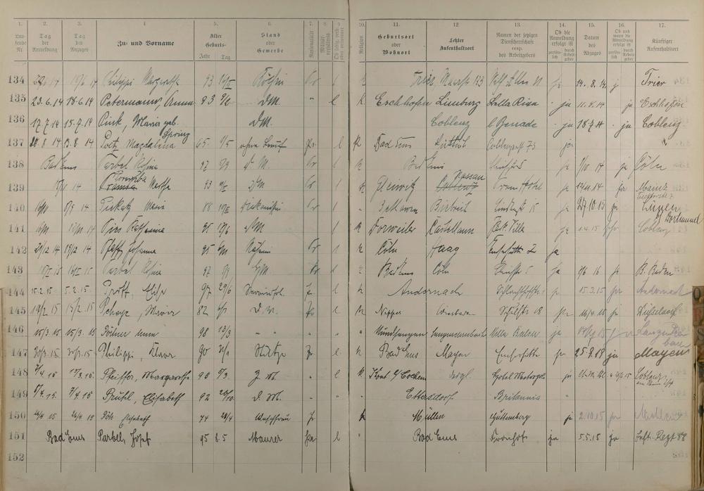 Melderegister der Gewerbegehilfinnen, Gesellinnen und Dienstbotinnen 1911 - Apr. 1915