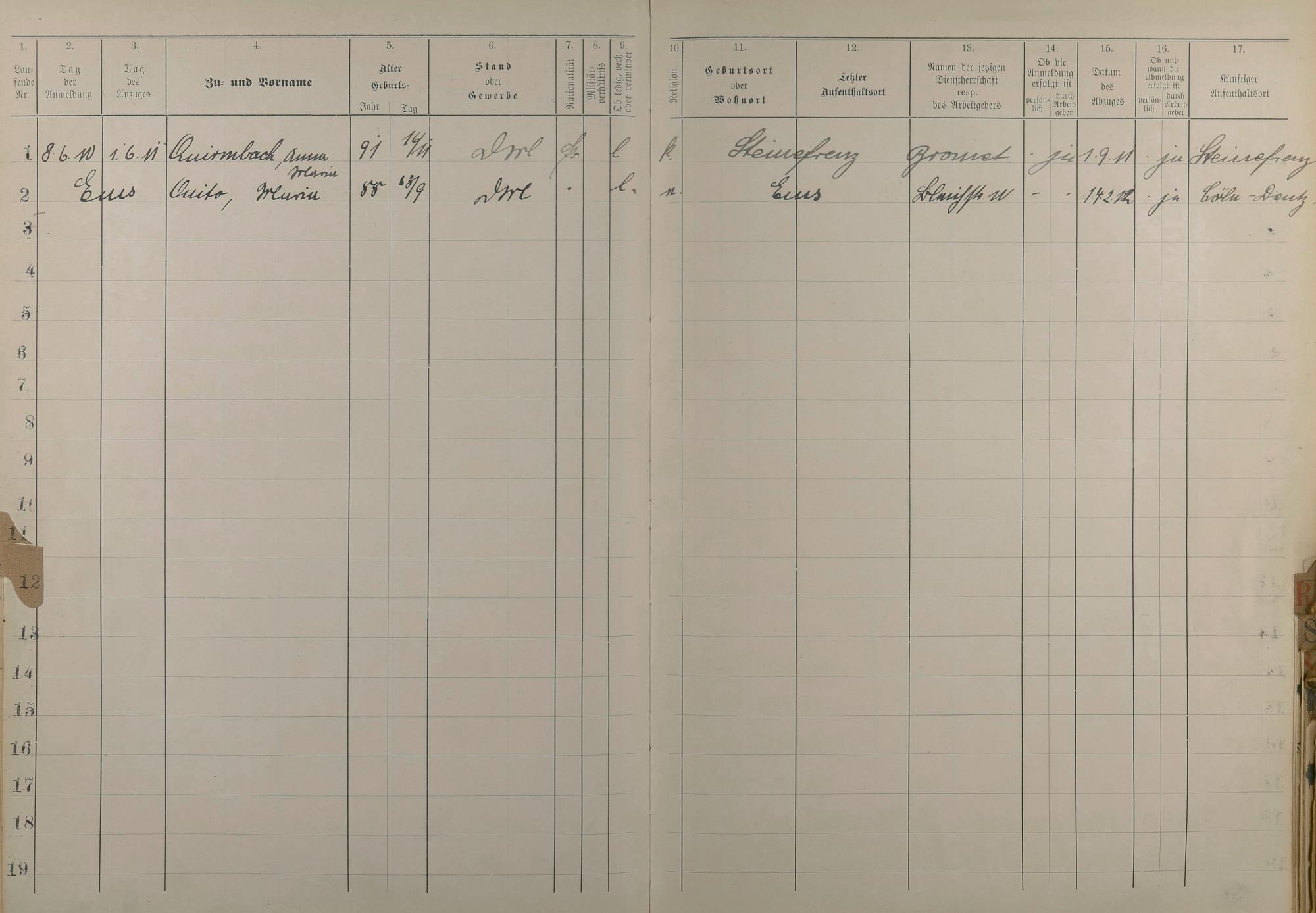 Melderegister der Gewerbegehilfinnen, Gesellinnen und Dienstbotinnen 1911 - Apr. 1915