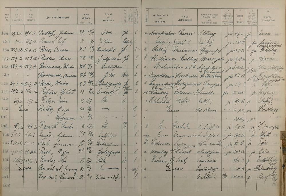 189: Melderegister der Gewerbegehilfinnen, Gesellinnen und Dienstbotinnen 1911 -...