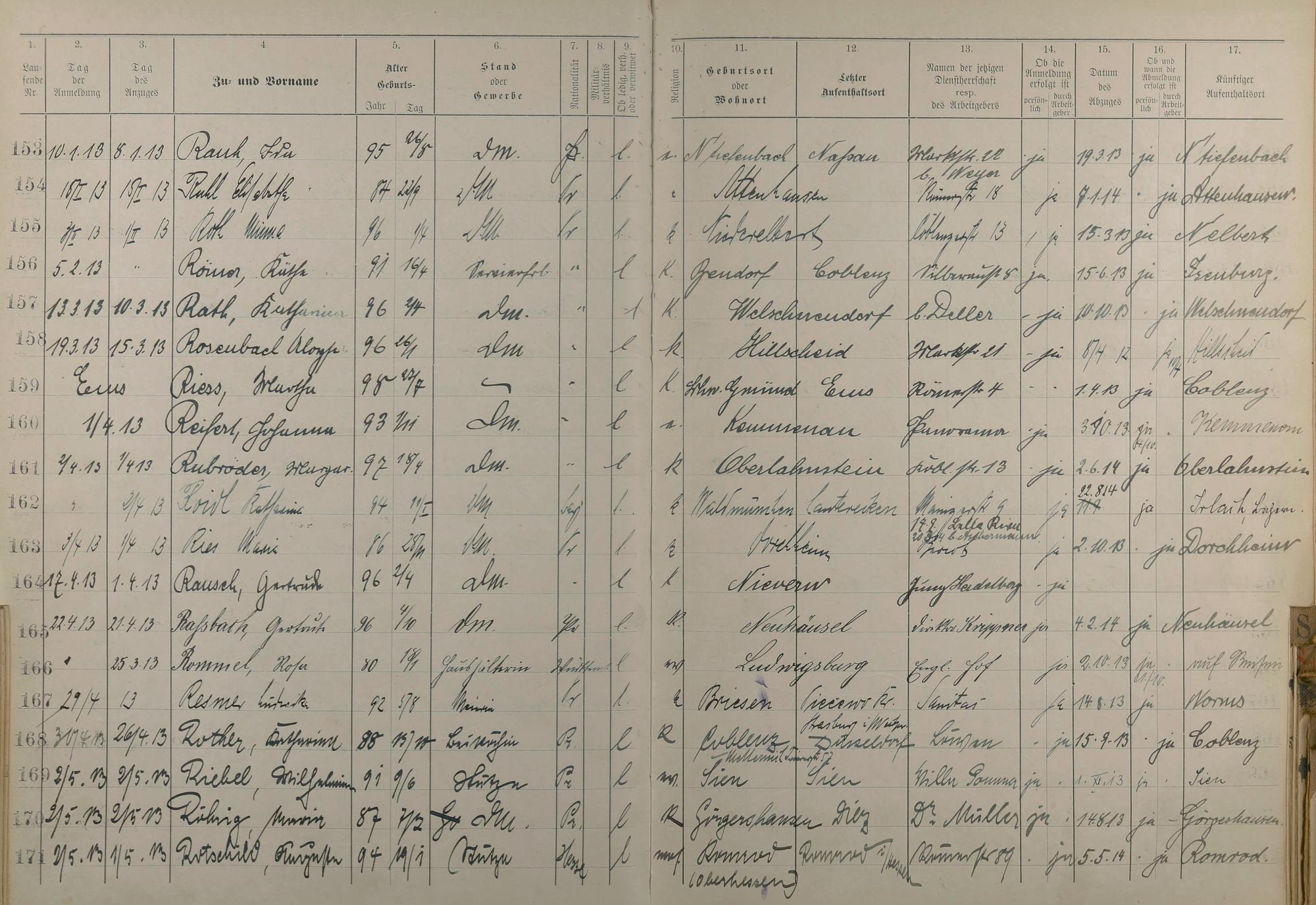 Melderegister der Gewerbegehilfinnen, Gesellinnen und Dienstbotinnen 1911 - Apr. 1915