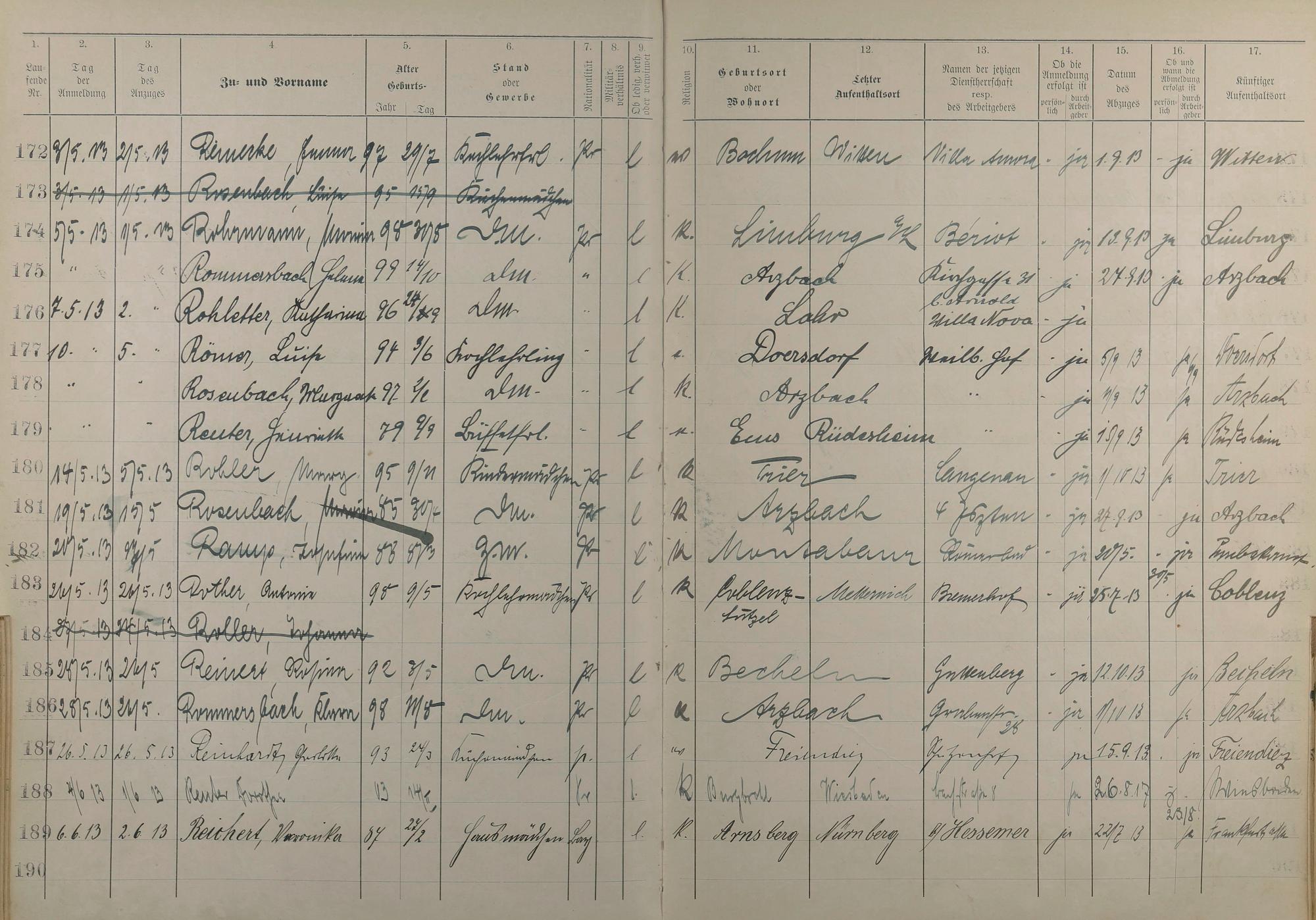 189: Melderegister der Gewerbegehilfinnen, Gesellinnen und Dienstbotinnen 1911 -...