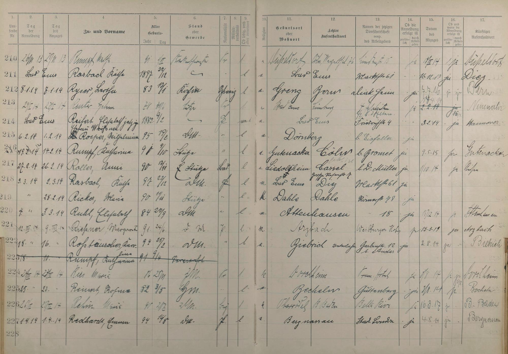Melderegister der Gewerbegehilfinnen, Gesellinnen und Dienstbotinnen 1911 - Apr. 1915